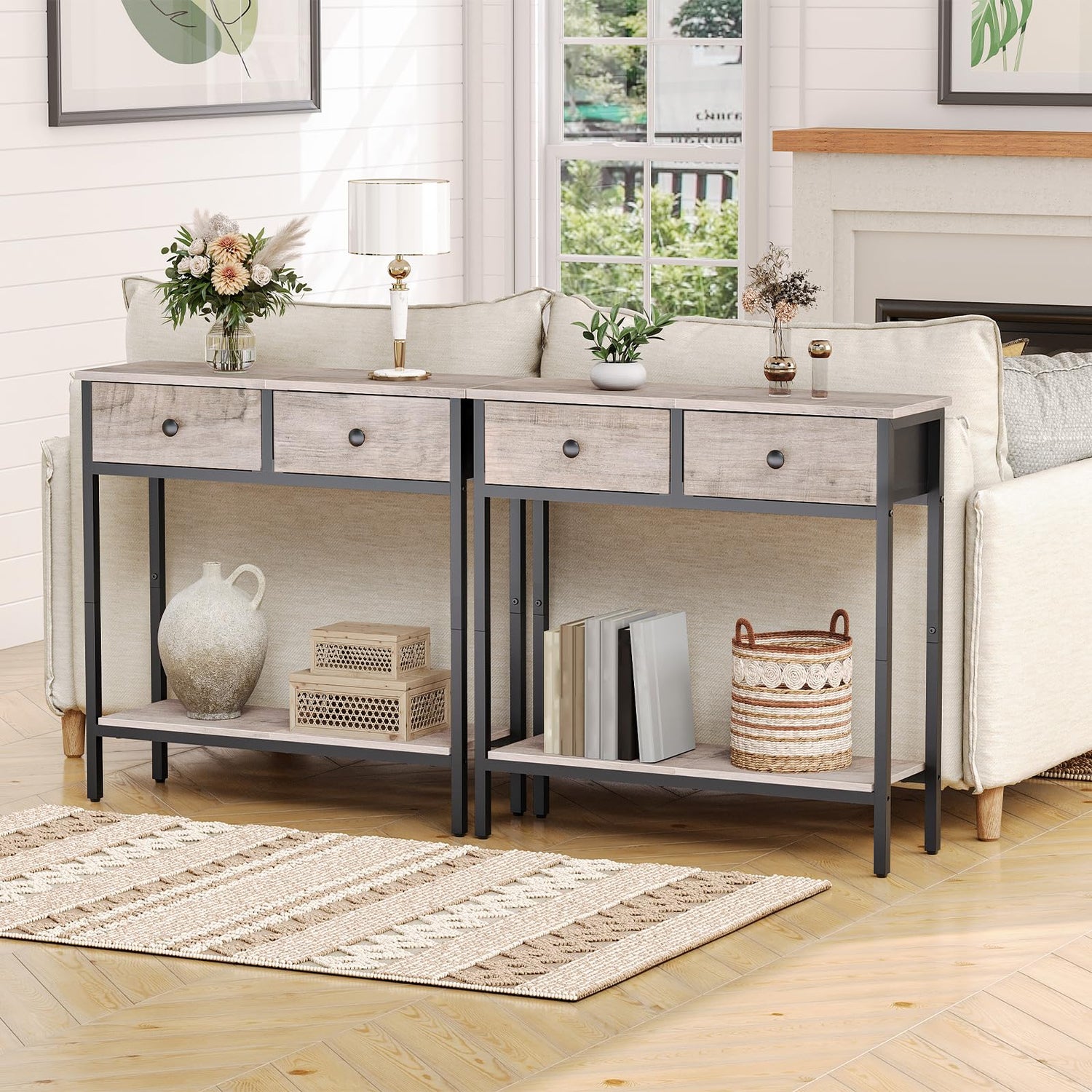 - 2-Tier Storage Spaces: The 2-tier console table includes 2 wooden shelves and 2 spacious non-woven fabric drawers below the wooden top. 1 tier open shelf design allows you to place books, vases, DVDs, storage boxes, etc. assuring your desktop is more tidy and satisfying your various needs