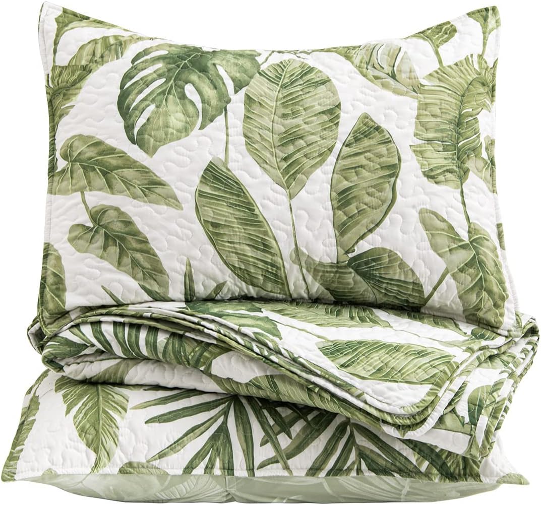 Tropical Plants Quilt Set Queen Size 3 Pieces