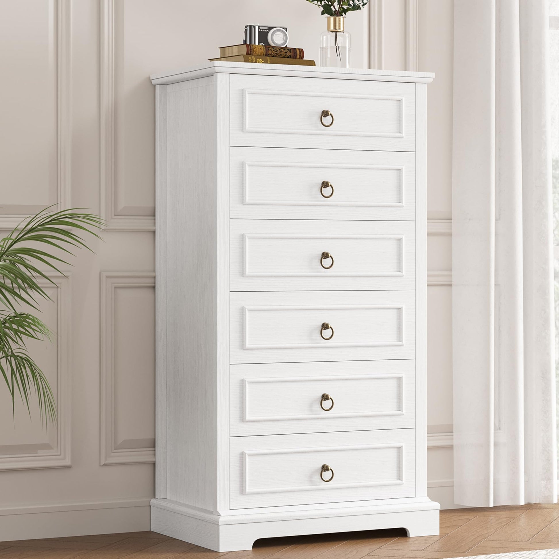 6 Drawer Dresser, 52" Tall Chest of Drawers, Modern Farmhouse Storage Dressers