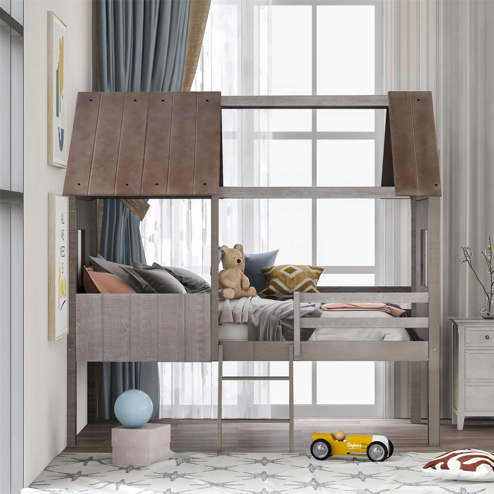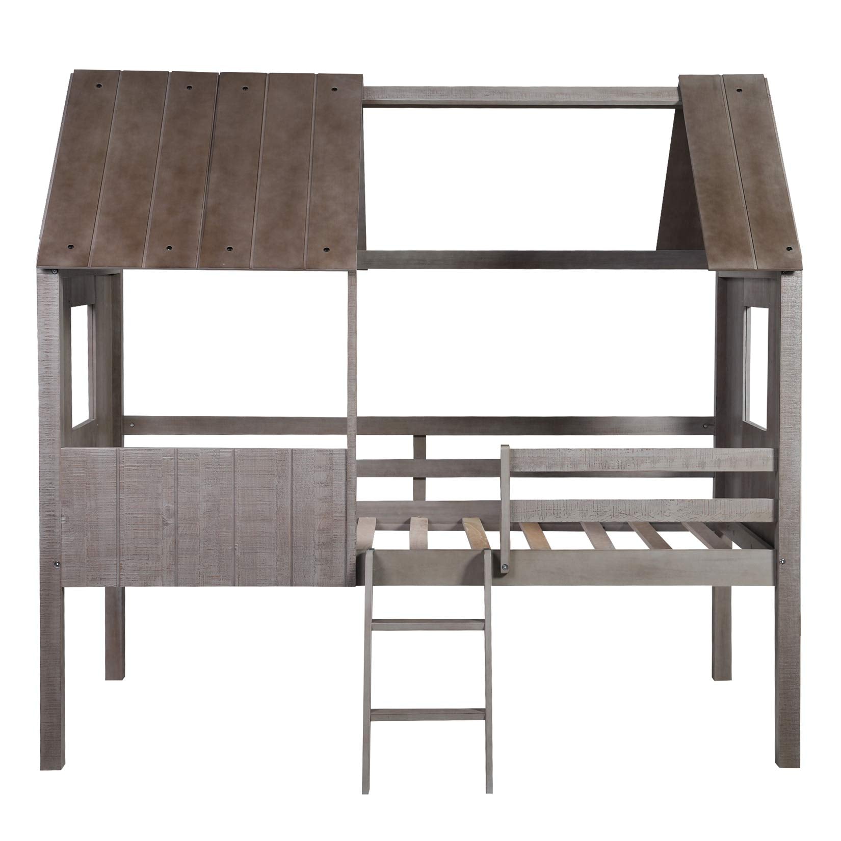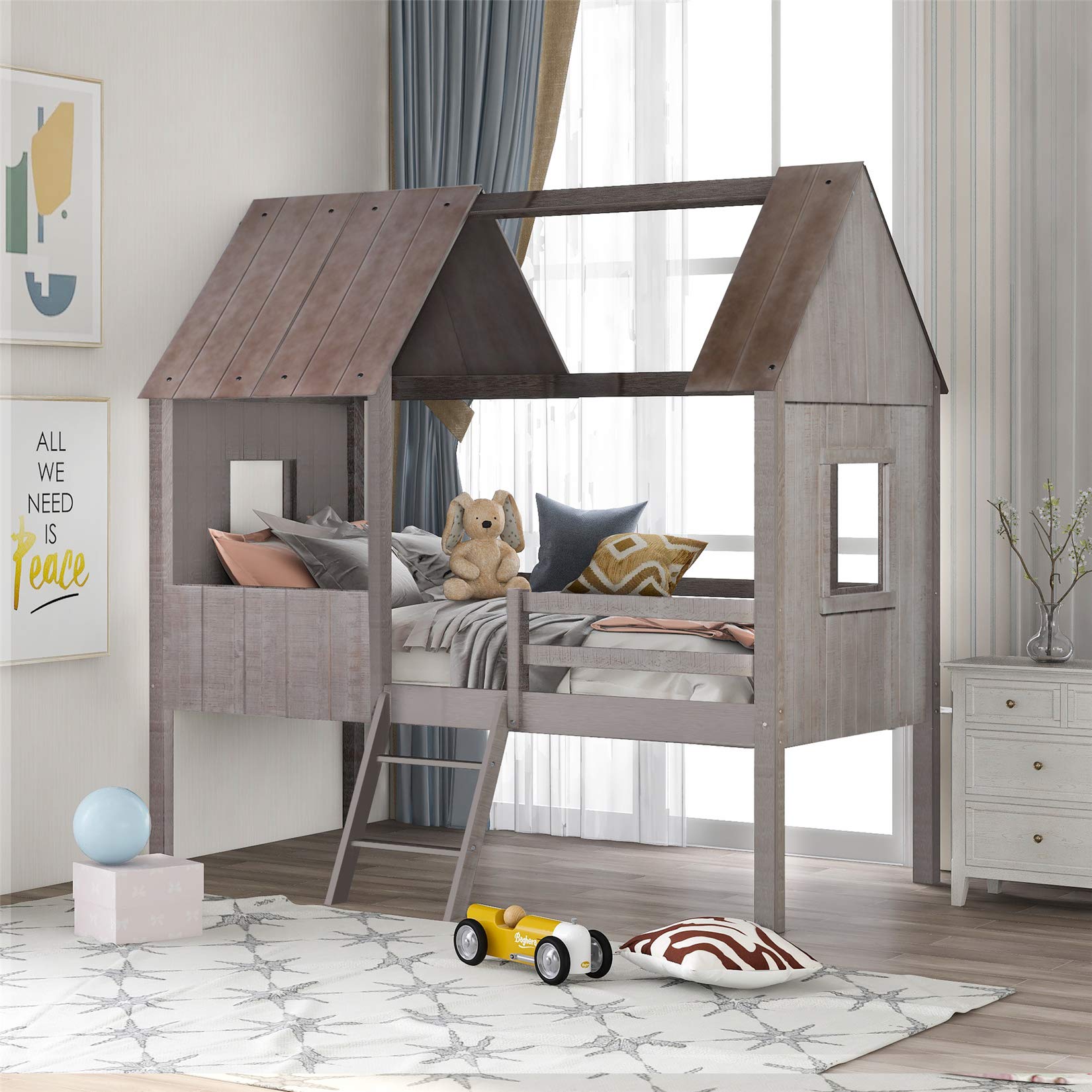 House Bed for Kids, Toddler House Bed, Twin Size Low Loft Bed, Wooden Twin Bed Frames for Kids/Teens/Girls/Boys