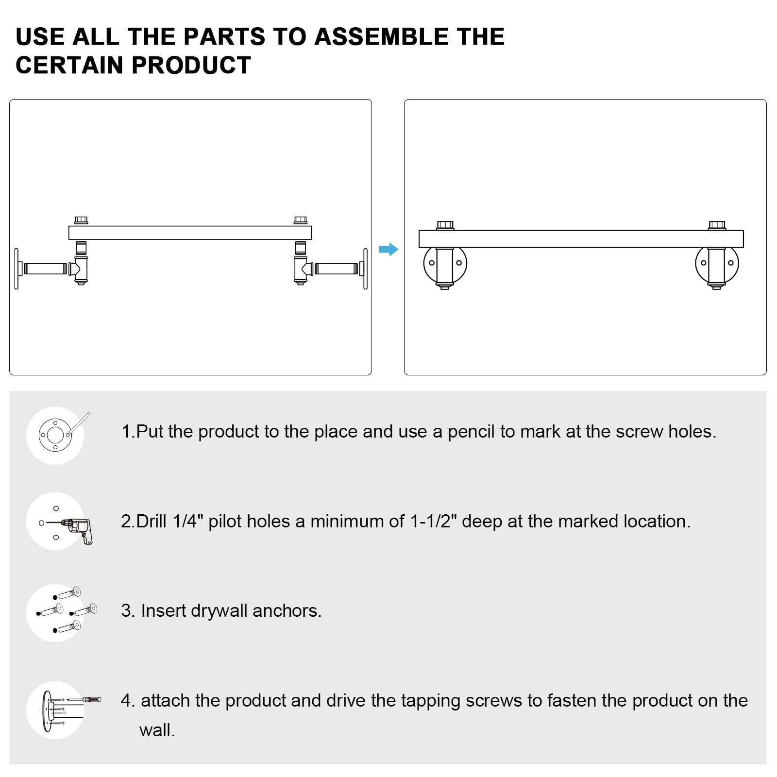 - Premium Material Made of high-quality galvanized Steel, the pipe shelves are extremely solid and sturdy. The wall-mounted installation ensures durability.