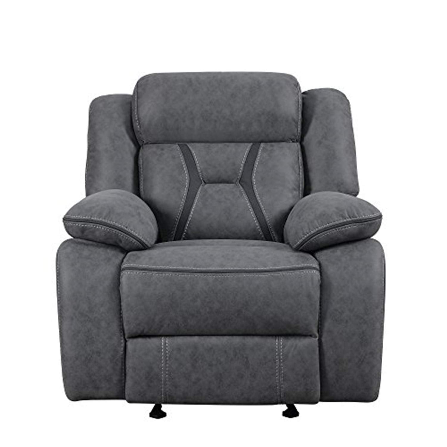 Bircata Houston Pillow-Soft Grey Glider Recliner with Contrast Stitching