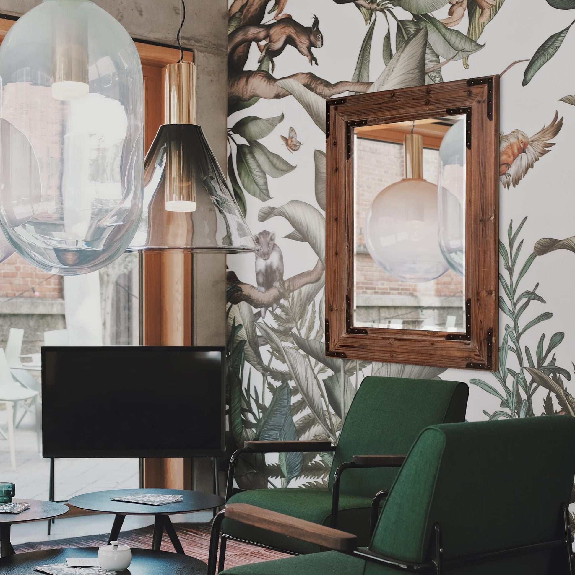 Hanging Rectangular Mirror for Wall, Large Natural Wooden Frame Mirror