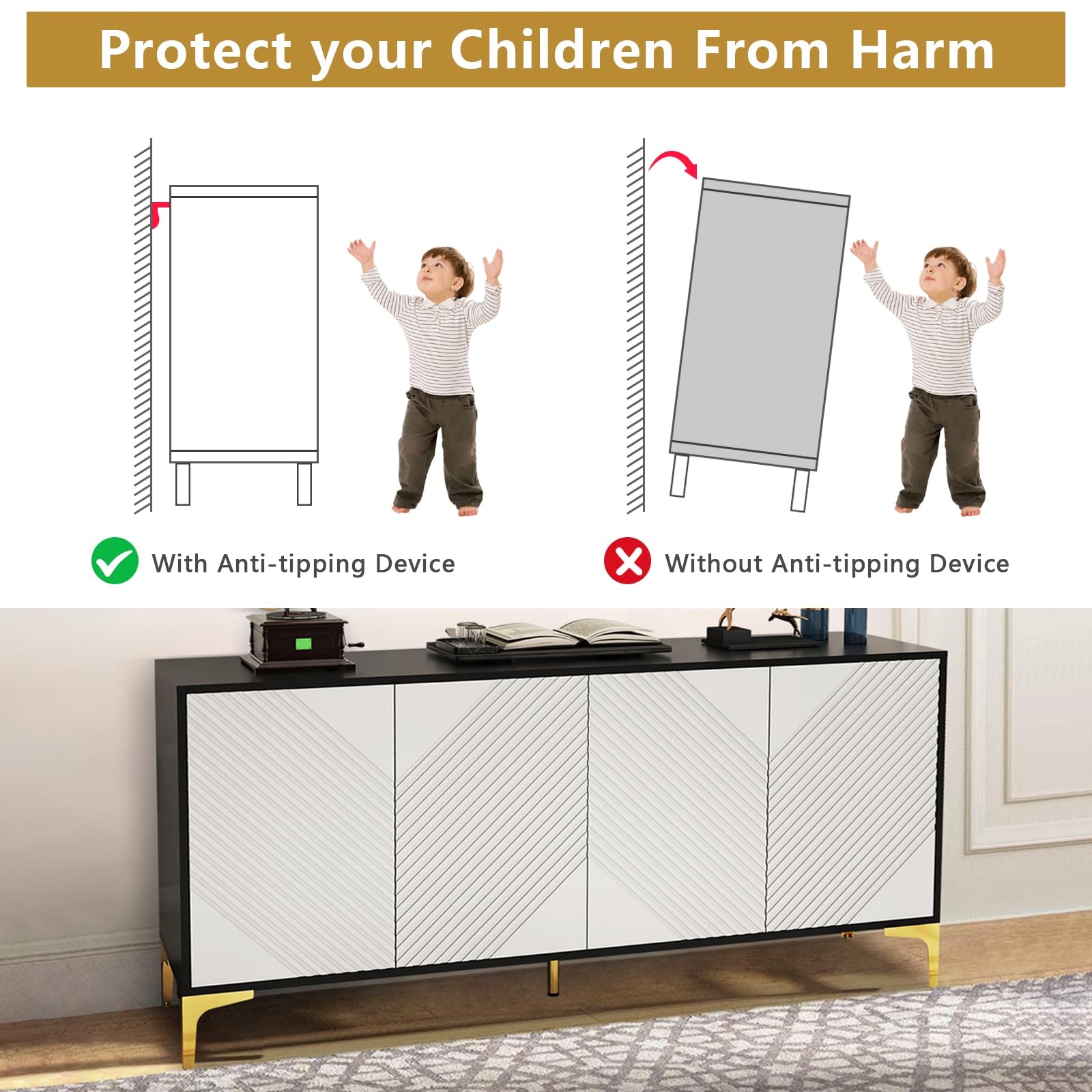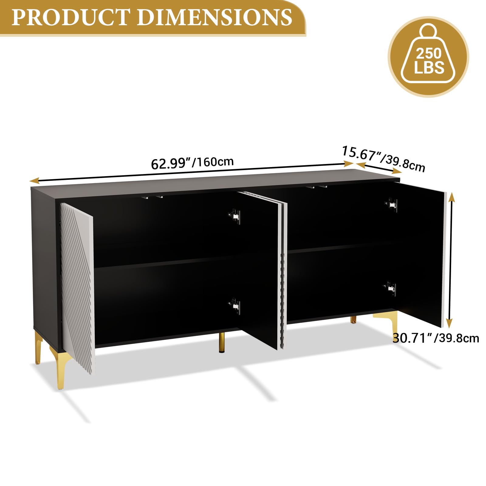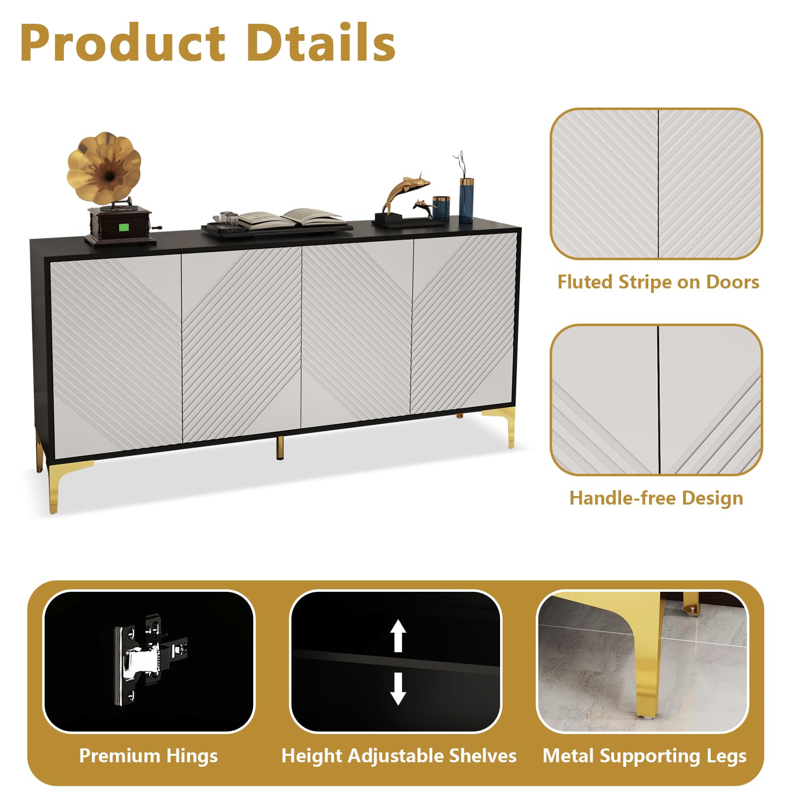 - High-Quality Construction The sideboard is constructed using high-quality materials MDF (Medium-Density Fiberboard), to ensure long-lasting performance. Crafted with premium materials, this sideboard is built to last. Additionally, the sideboard is designed to provide stability and balance, preventing any wobbling or tipping, even when fully loaded with items.