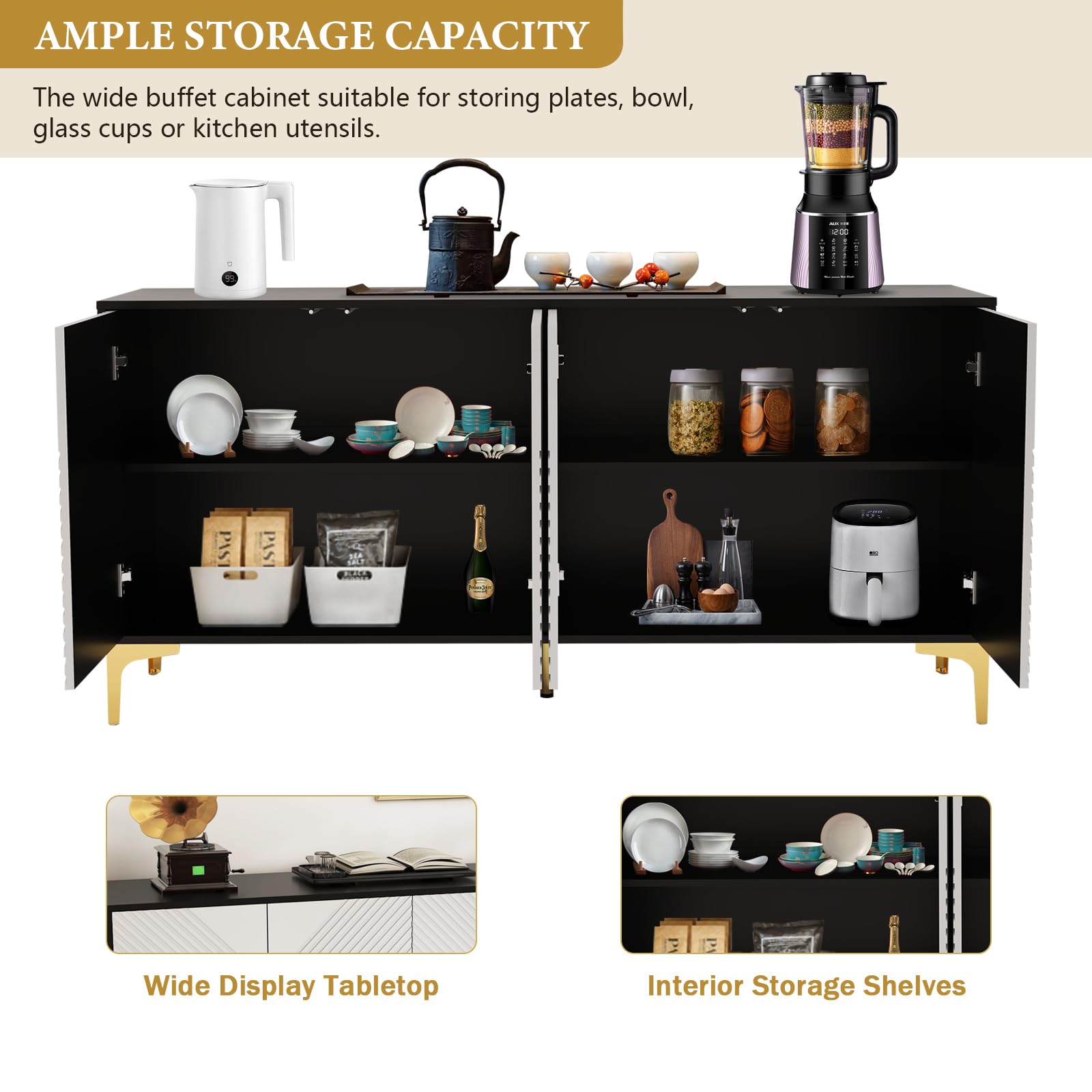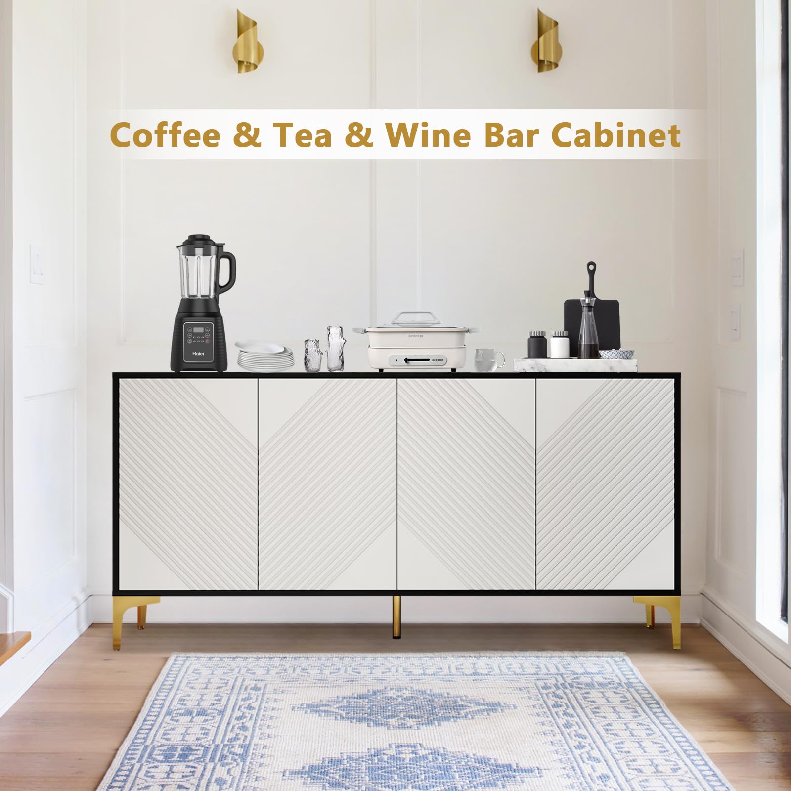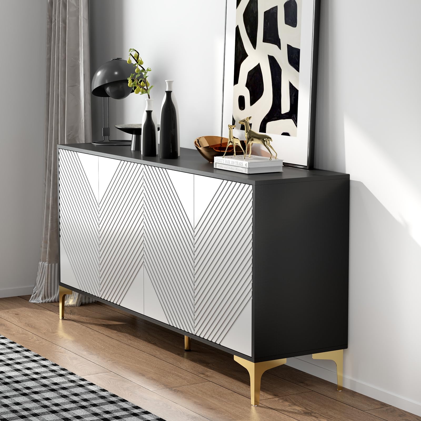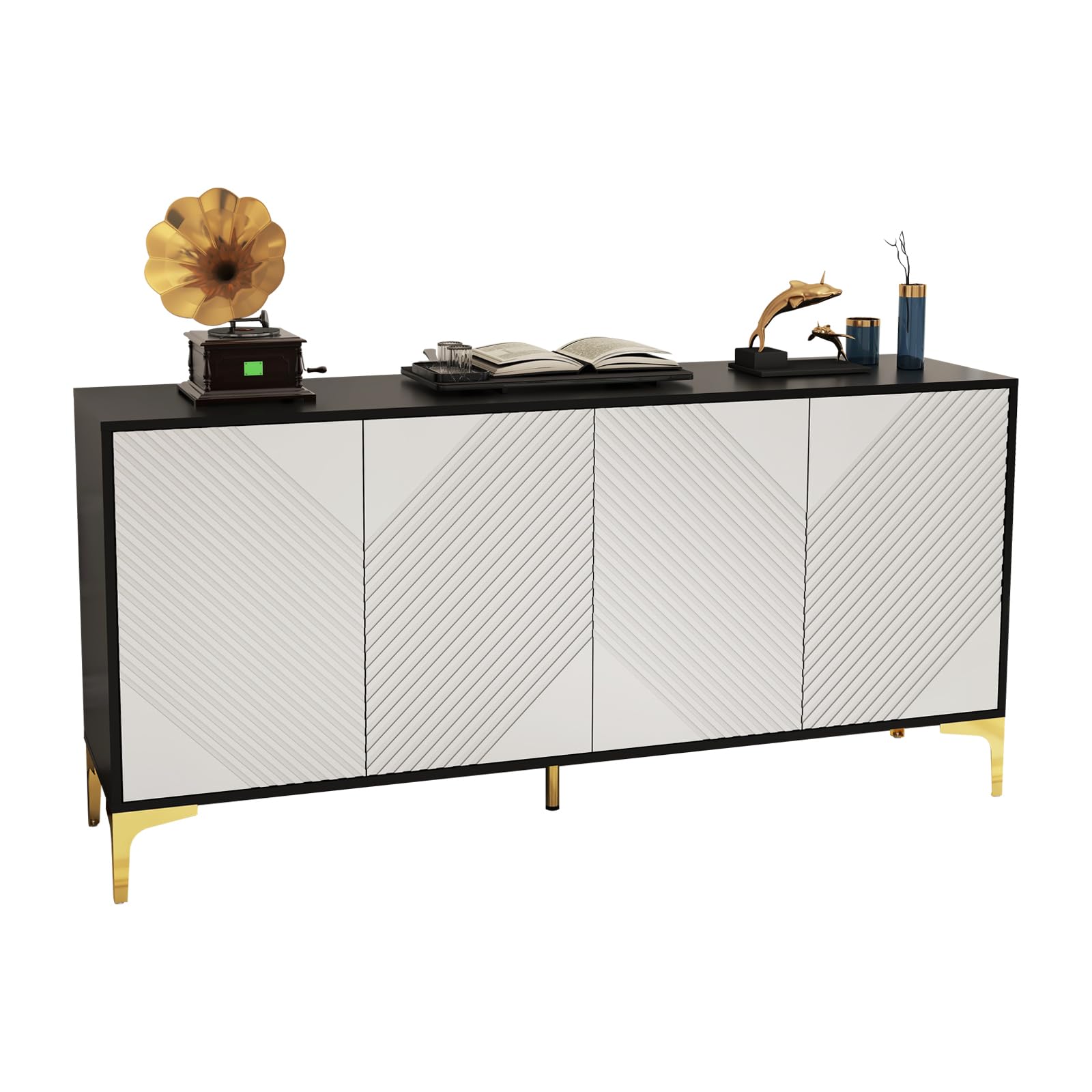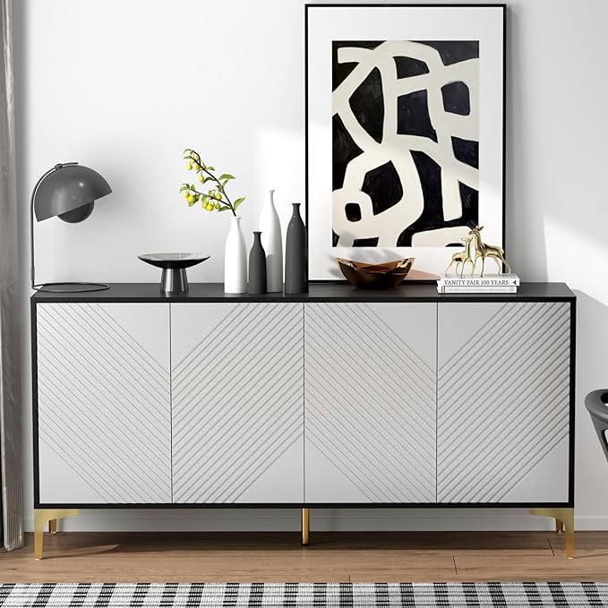 - Stylish and Modern Design The modern sideboard is crafted with precision and attention to detail, ensuring both durability and aesthetic appeal. It features a sleek and minimalist design, characterized by clean lines and a smooth finish. Its sleek and streamlined appearance complements a wide range of interior decor styles, including modern, minimalist and transitional.