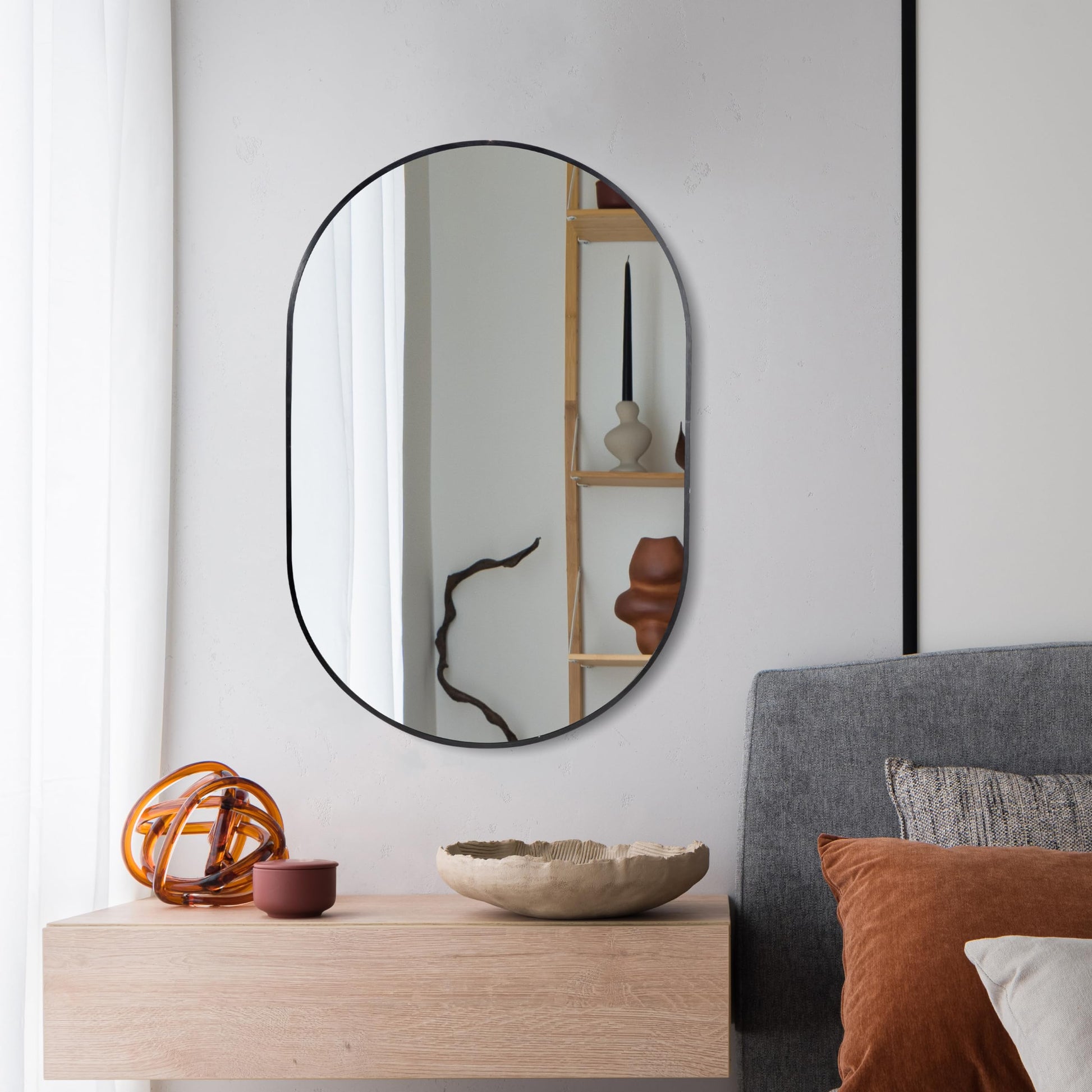 Wall Mounted Mirror, Oval Bathroom Mirror, Black Vanity Wall Mirror