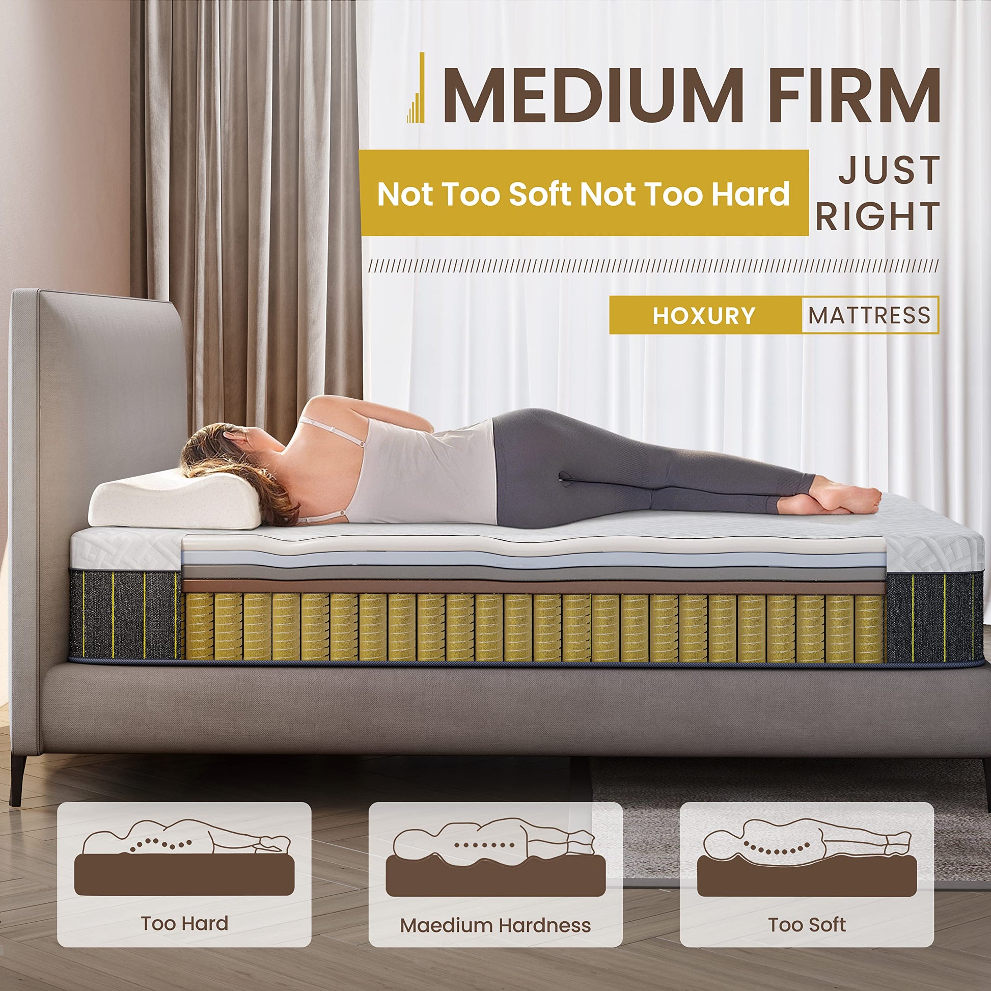 - Cooling and Medium-Firm Feel premium innerspring mattress is designed with a breathable knitting fabric cover, which helps to disparate body heat, allowing airflow and releasing moisture, pocket springs underneath also enhance airflow. The universally comfortable medium feel of this mattress is designed for everyone.