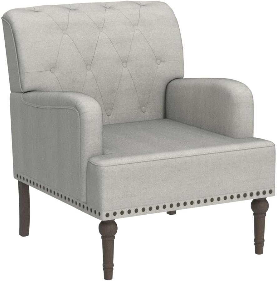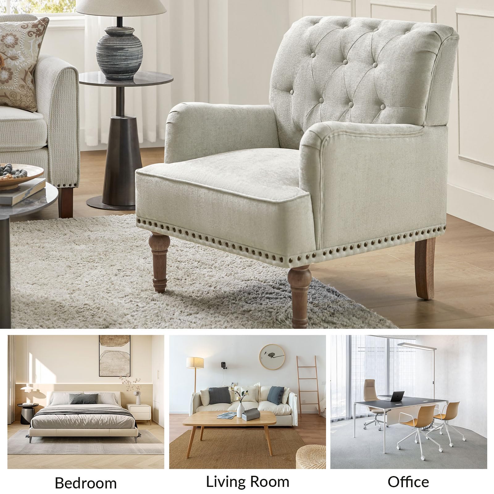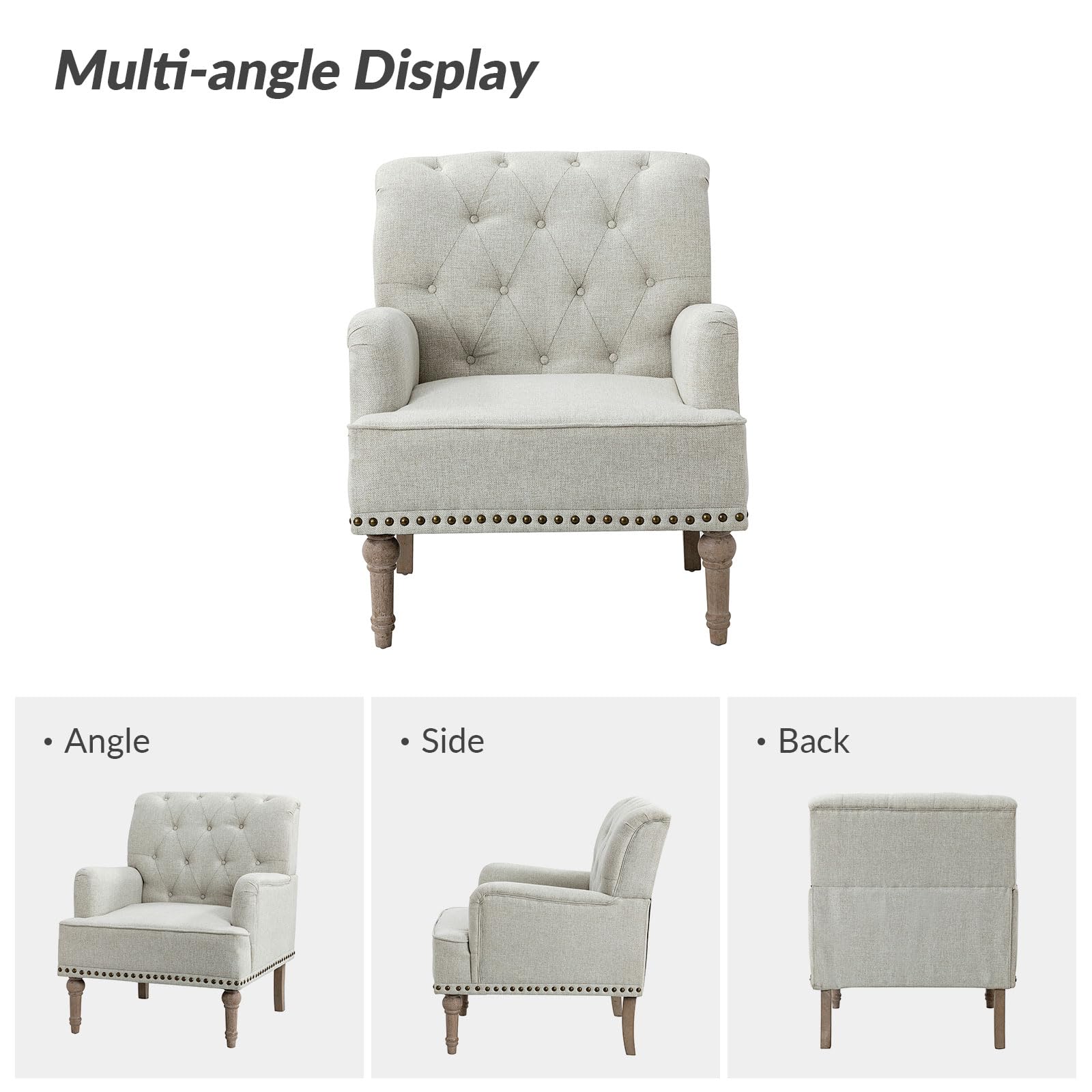 Set of 2 Modern Accent Chair with Retro Wood Legs, Comfy Upholstered Armchair with Button-Tufted and Nailhead Trim for Living Room Bedroom, Oatmeal