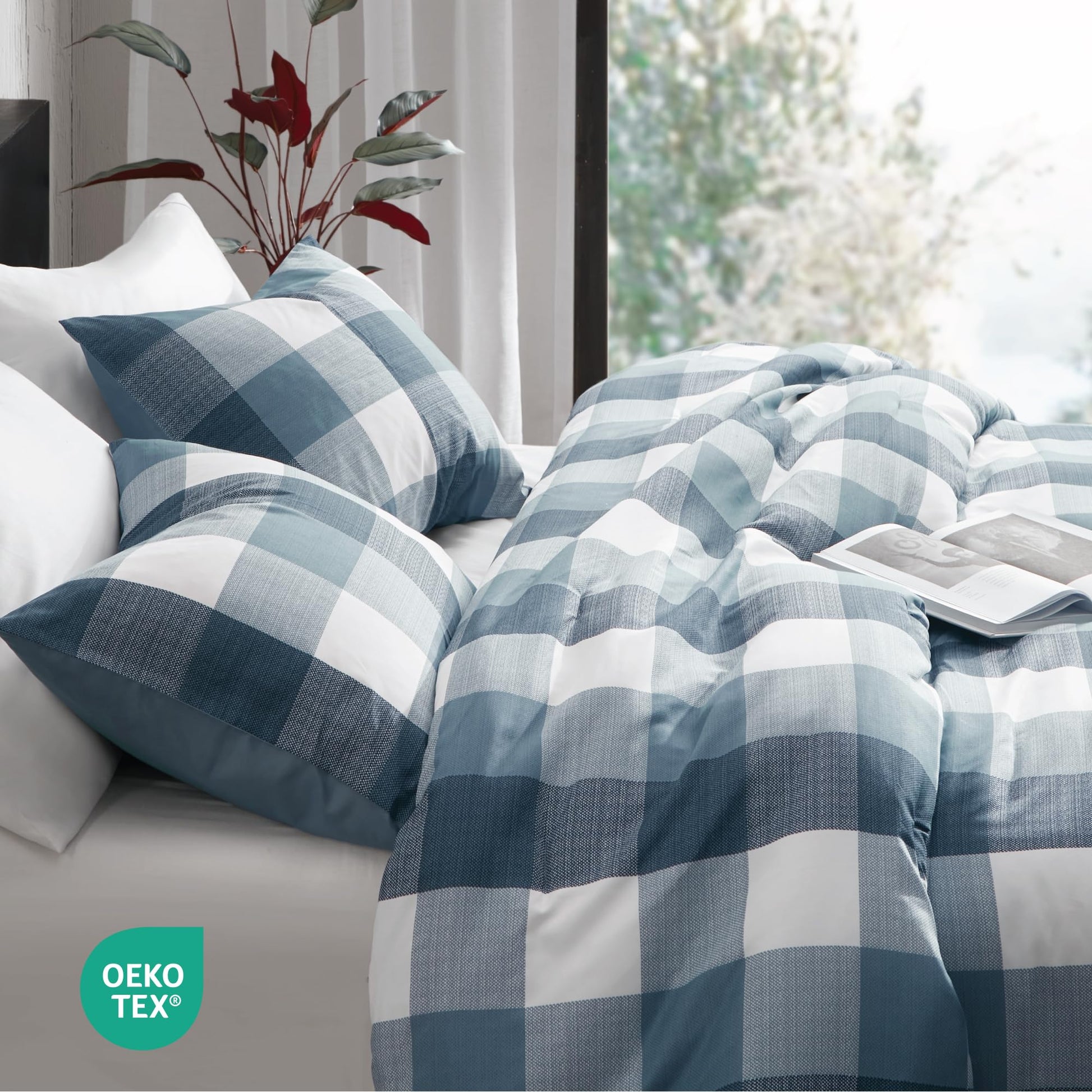 Plaid Twin Comforter Set for Teen, Farmhouse Comforter Twin Size Bed, Blue and White Comforter, Grid Buffalo Lightweight 3 Pieces Bed Sets Includes 1 Comforter, 1 Shams (66 x 90 Inch)