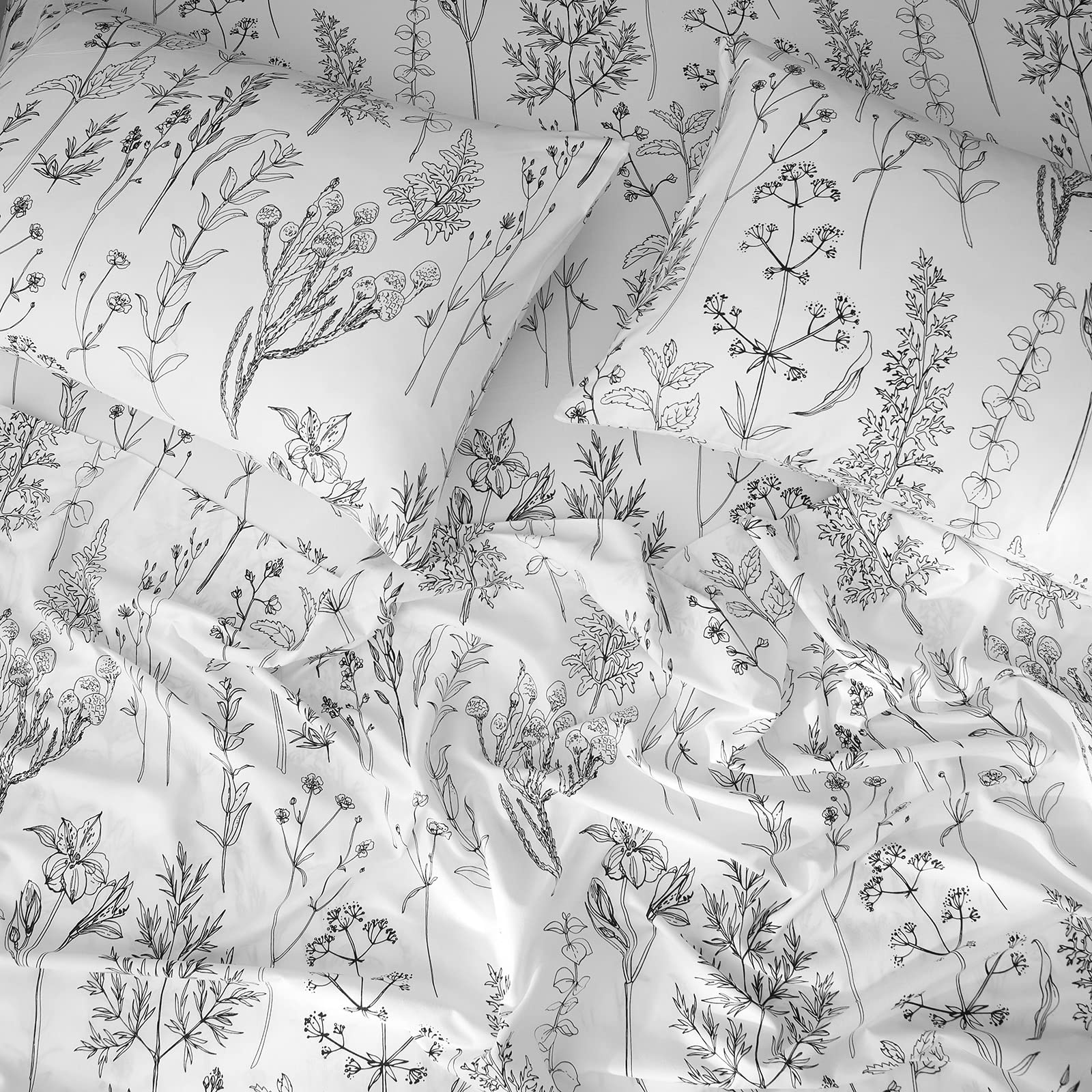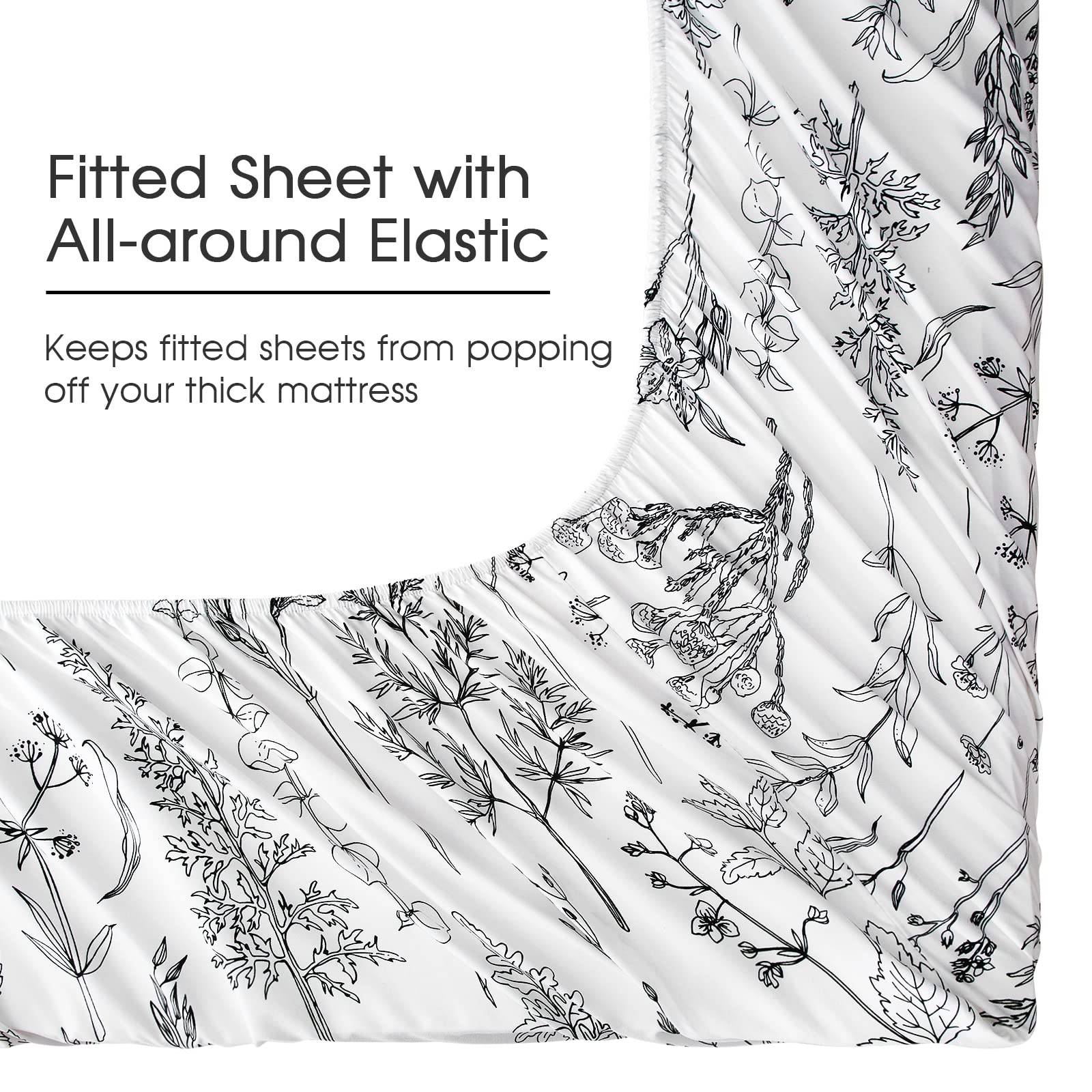 - 1800 Thread Count Microfiber Sheet Set - Made from premiun microfiber fabric, this white and black floral sheets is soft and smooth to touch, with no fade and wrinkle.