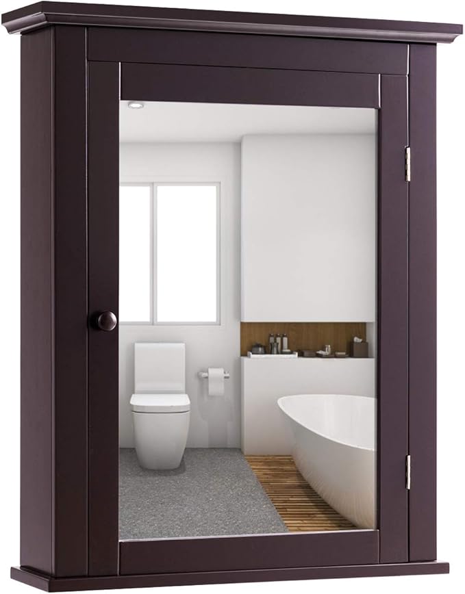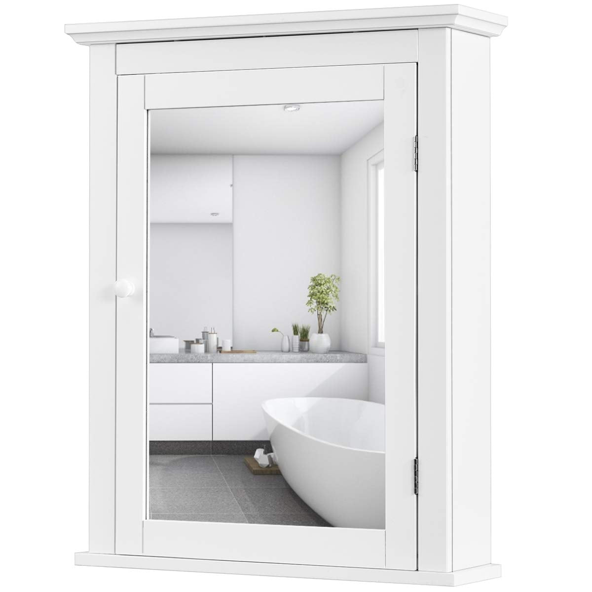 Bathroom Medicine Cabinets, Wall Mount Mirrored Storage Cabinets w/Single Door