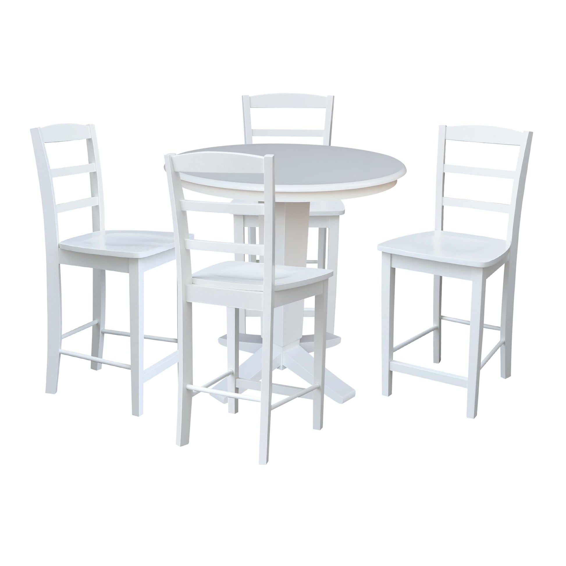 36 in Round Top Counter Height Dining Table with 4 Stools in White - 5 Piece Set