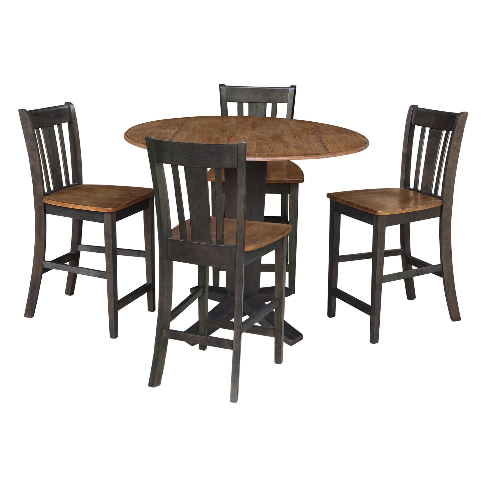 42 in Round Drop Leaf Counter Height Dining Table with 4 Stools in Hickory/Washed Coal - 5 Piece Set