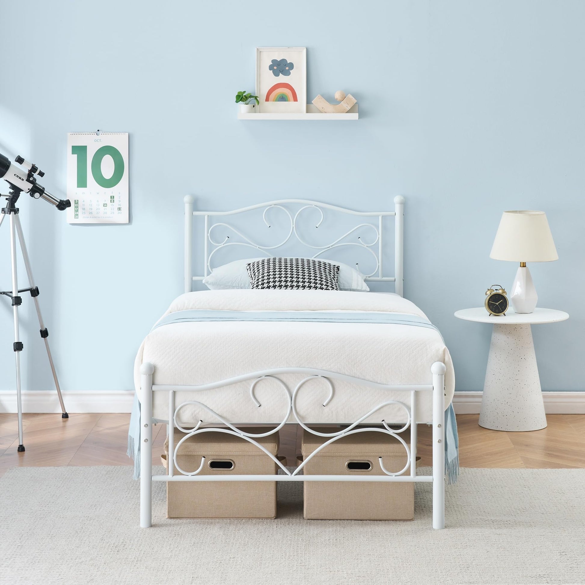 Twin Bed Frames, Twin Size Bed Frame with Headboard, Heavy Duty Mattress Foundation with Steel Slats Support, No Box Spring Needed, White