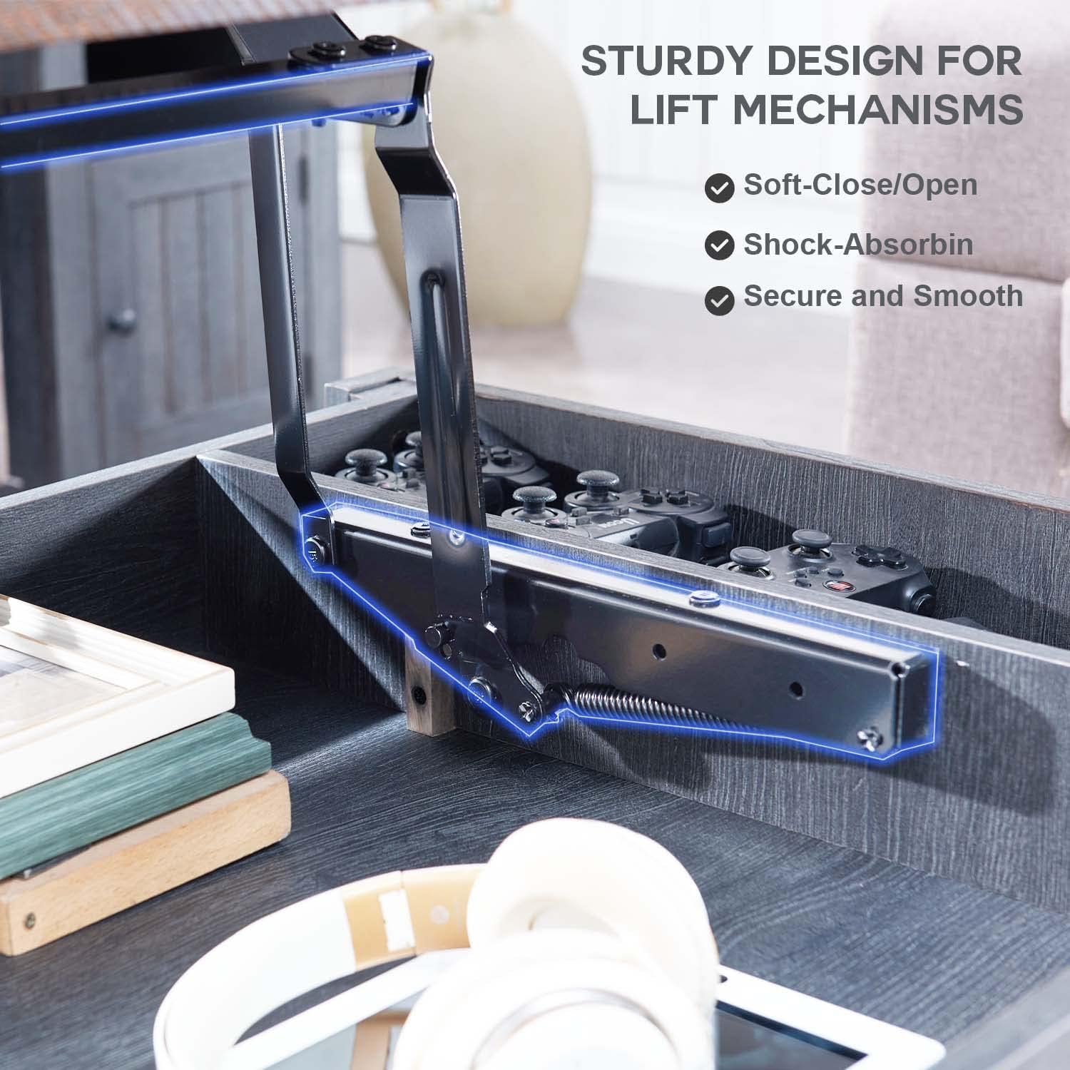 - Lift-Top Design: This lift-top coffee table allows for easy adjustment of different heights and provides both enclosed and open storage spaces. Its sturdy metal lift structure ensures smooth and even lifting and lowering of the tabletop, providing a perfect workspace for your office needs. Large hidden compartments underneath the coffee table top store everyday items such as remotes, books, mugs, game consoles, etc. and keep dust out.