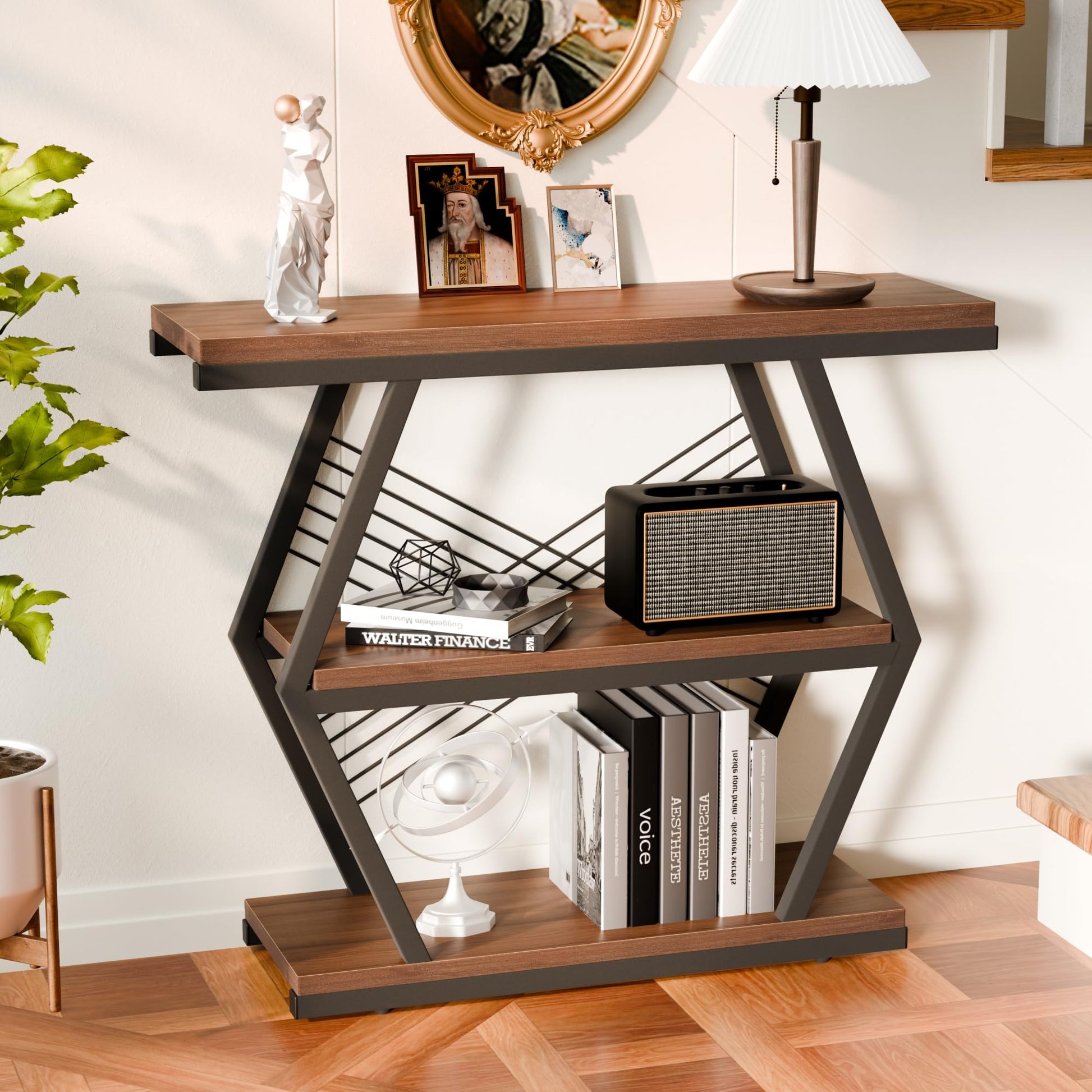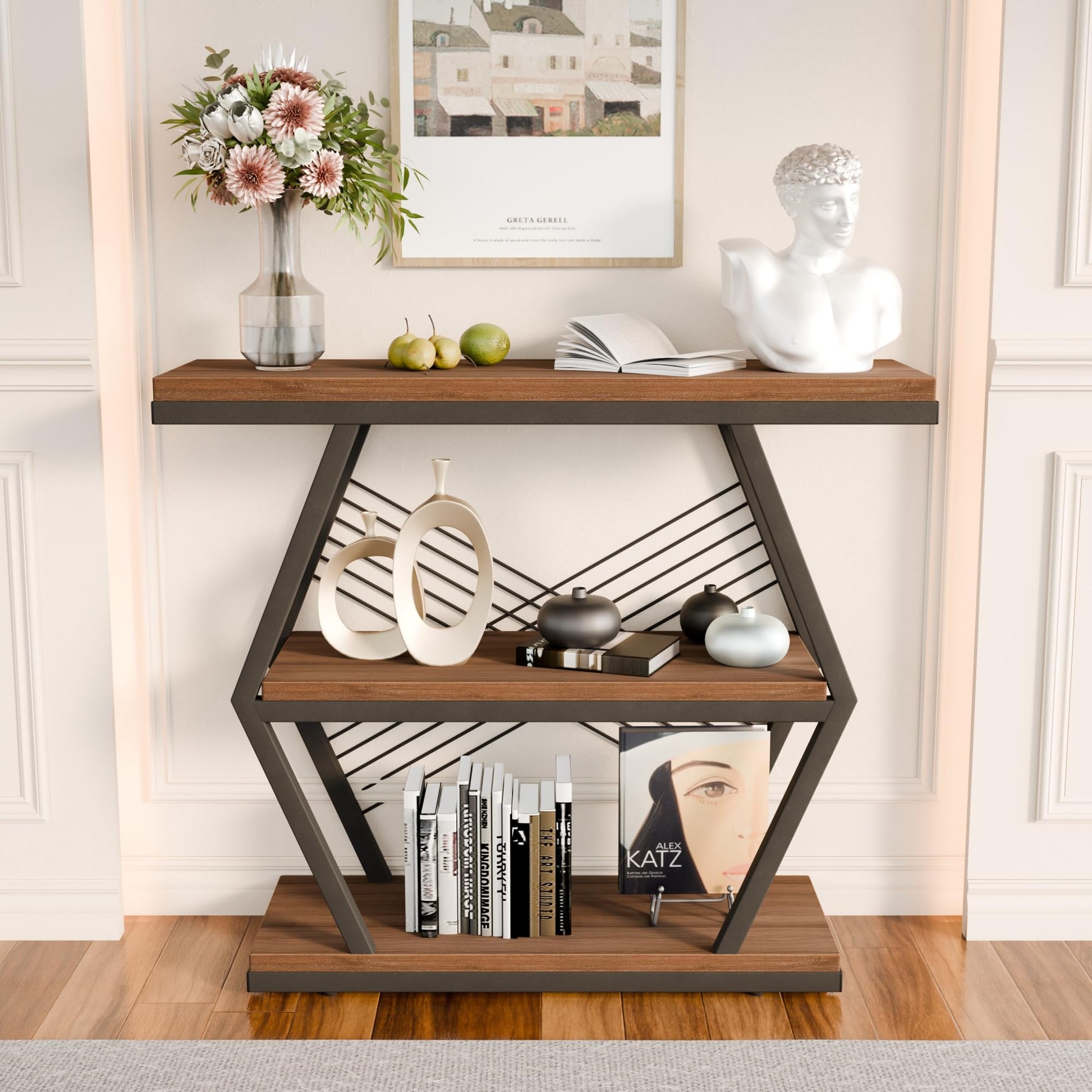 39.4" Industrial Console Table - 3-Tier Rustic Brown Entryway Table