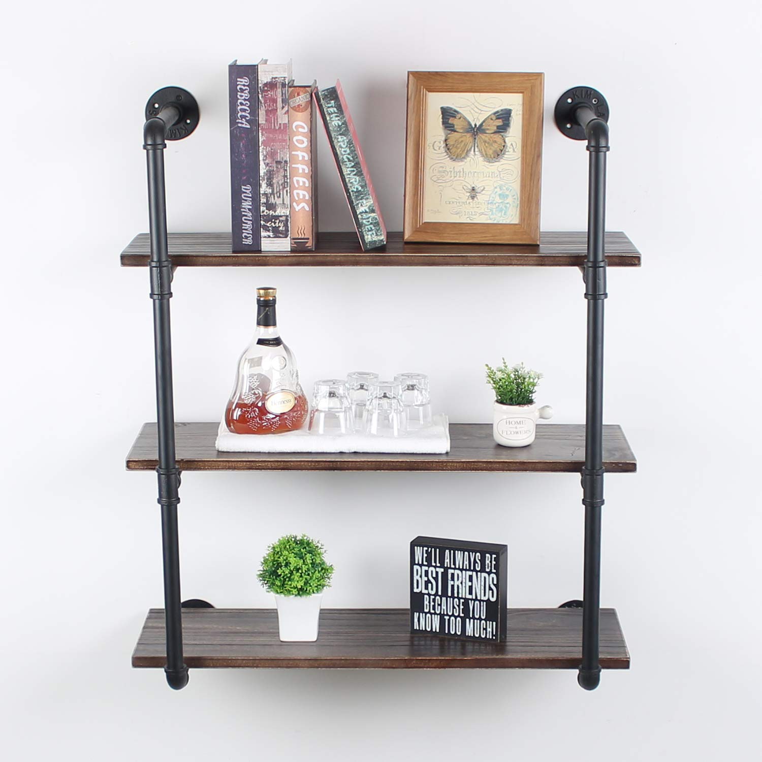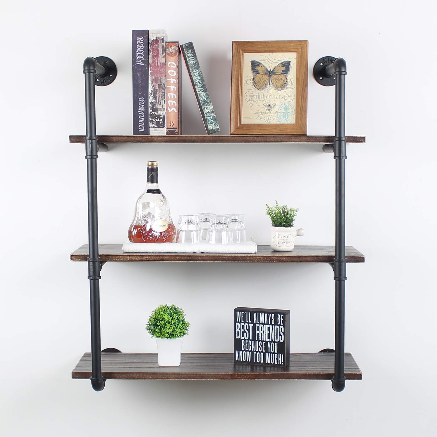 Industrial Floating Shelves Wall Mount,30in Rustic Pipe Wall Shelf,3-Tiers Wall Mount