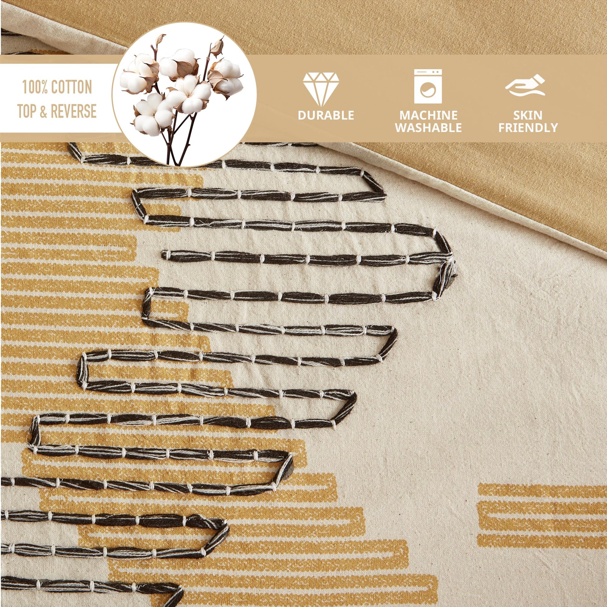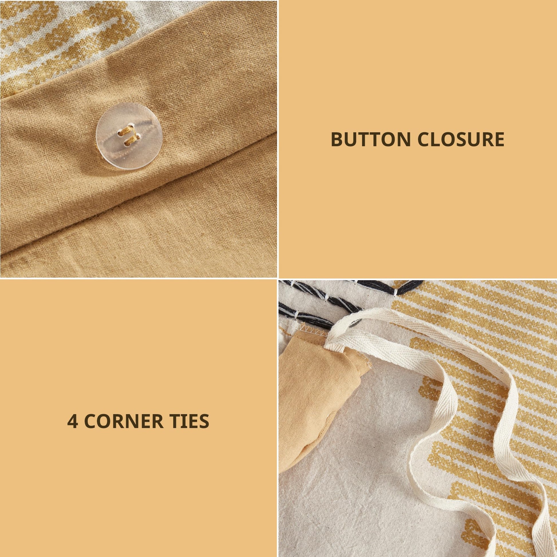 - Trendy Bed Set -a Southwestern-inspired boho duvet cover set with twisted yarn embroidery and corner tassels, adding a delightful texture & dimension. Featuring four corner ties and a button closure to securely enclose the insert, preventing any shifting