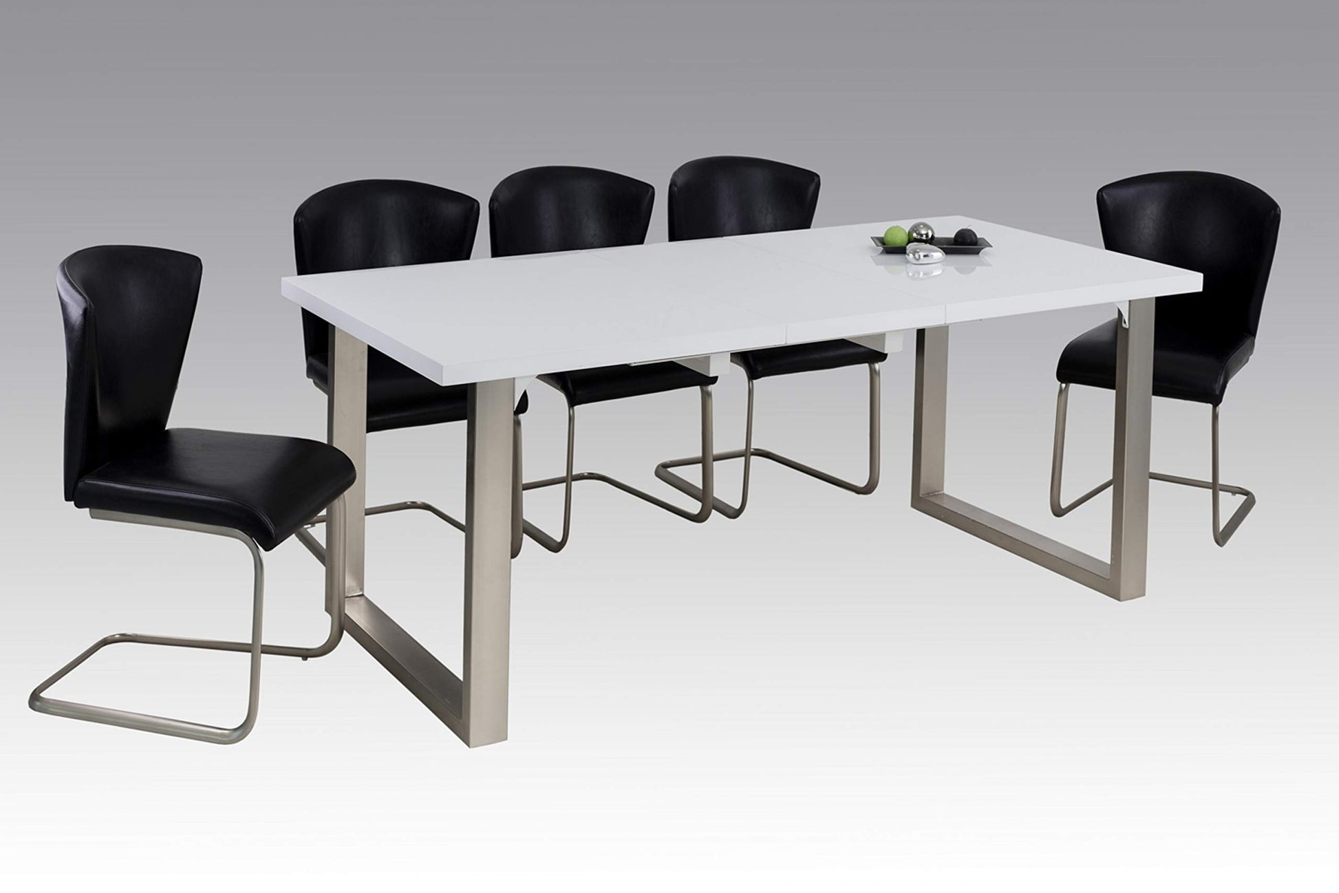 - Ideal for a regular size dining room with flexible space and is an absolute highlight because of its beautiful high gloss white color