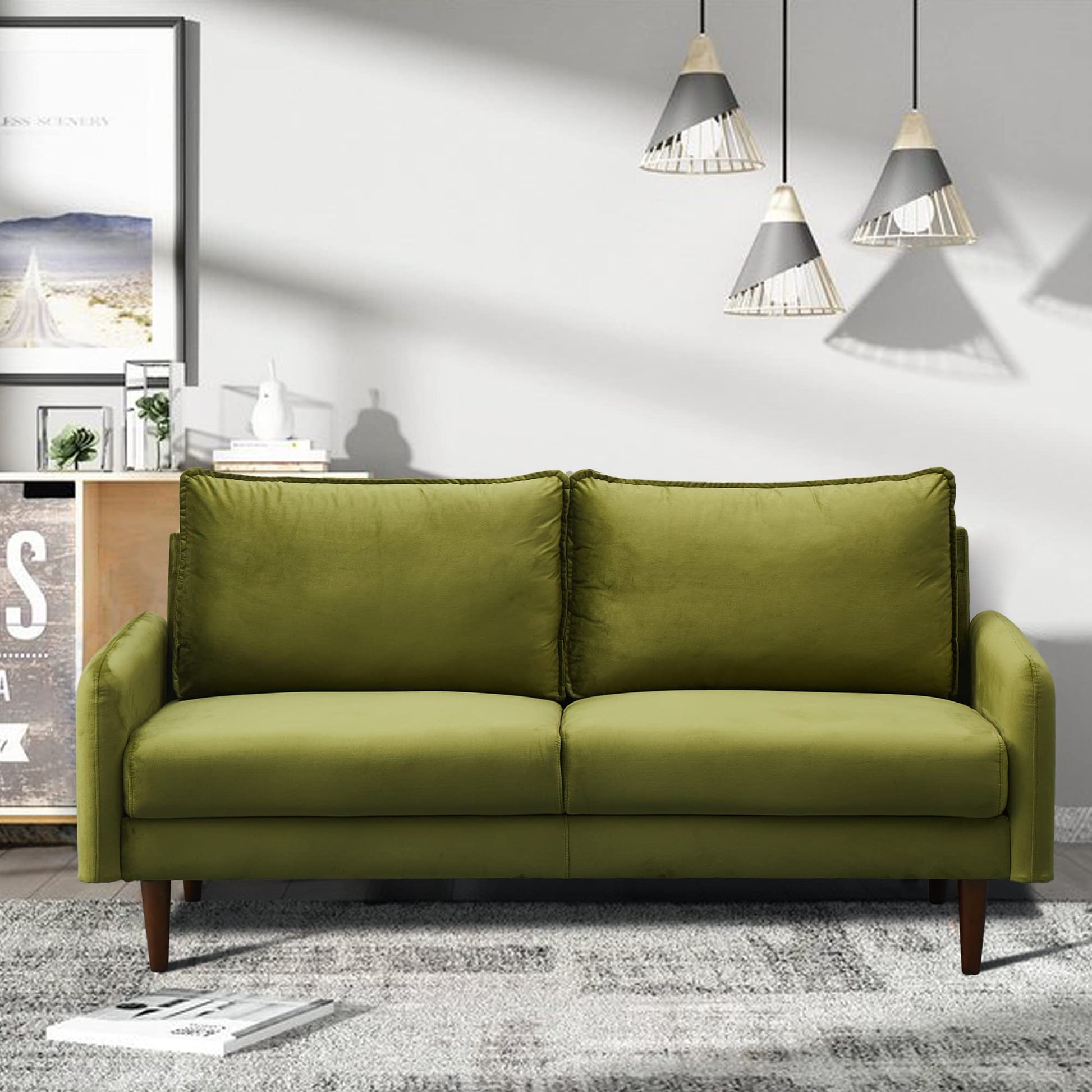 Velvet Sofa Mid-Century Modern Couch with Wooden Legs for Living Room - Army Green