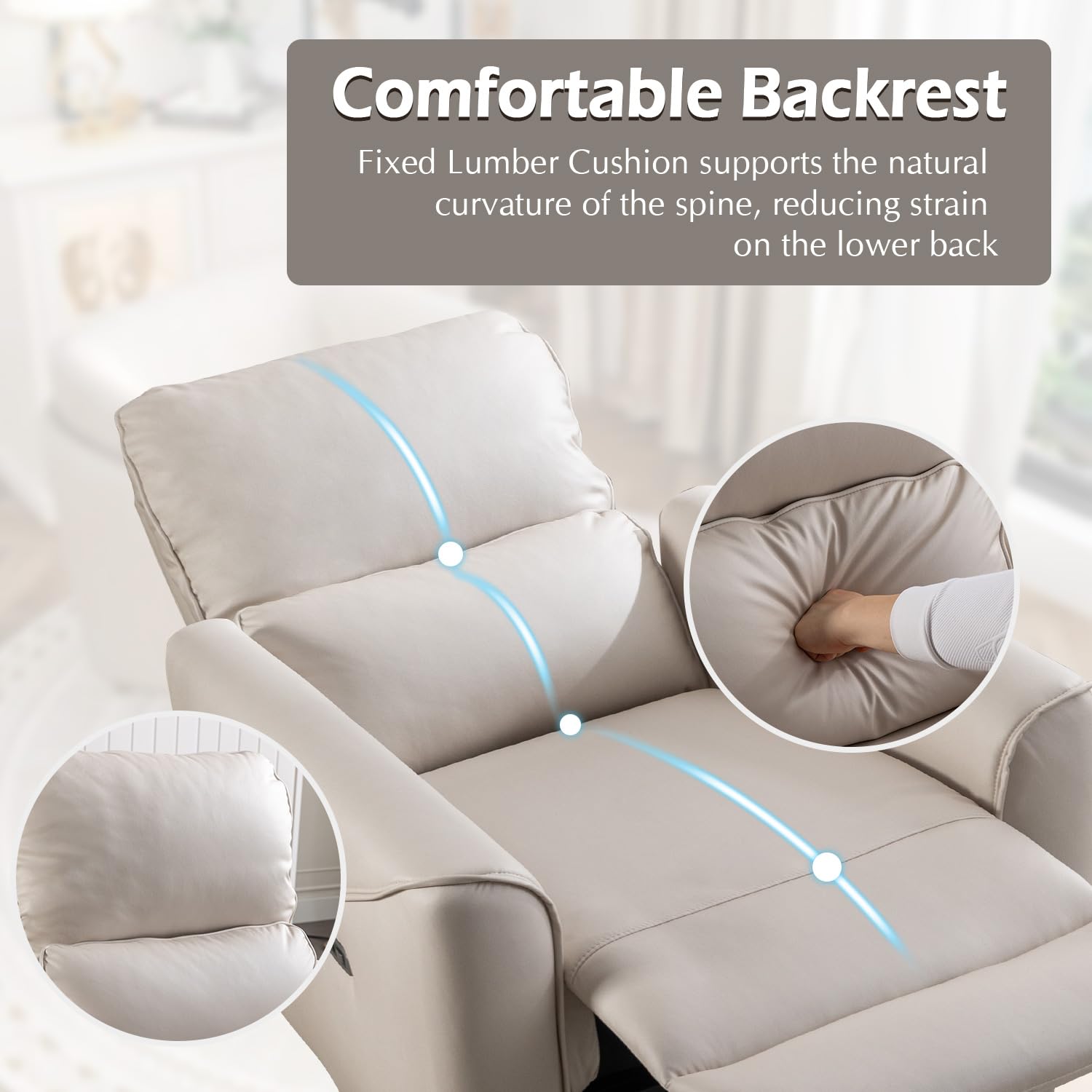 - Fixed Lumbar Support&Modern Aesthetics The fixed lumbar support promotes healthy spine alignment, reducing stress and enhancing overall comfort during extended seating. The sleek design and white upholstery bring a touch of modernity to your living space, creating an eye-catching focal point.