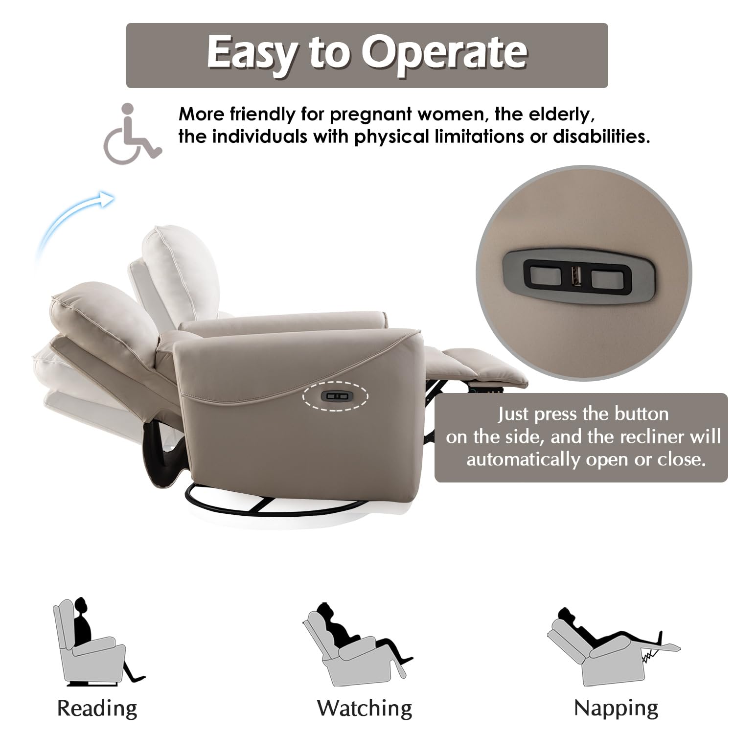 Electric Swivel Rocker Recliner, Power Recliner Swivel Glider with Lumbar Support