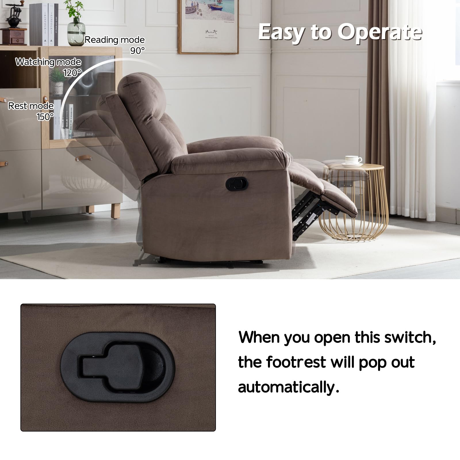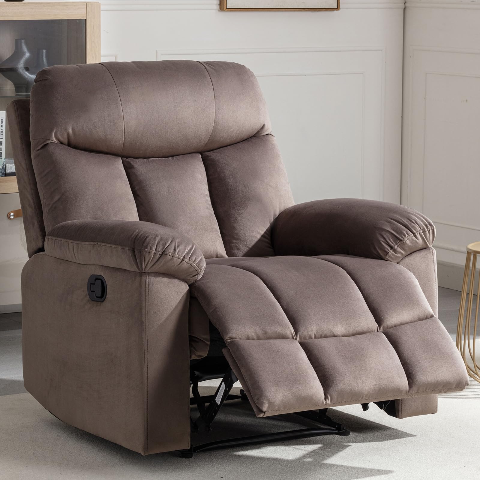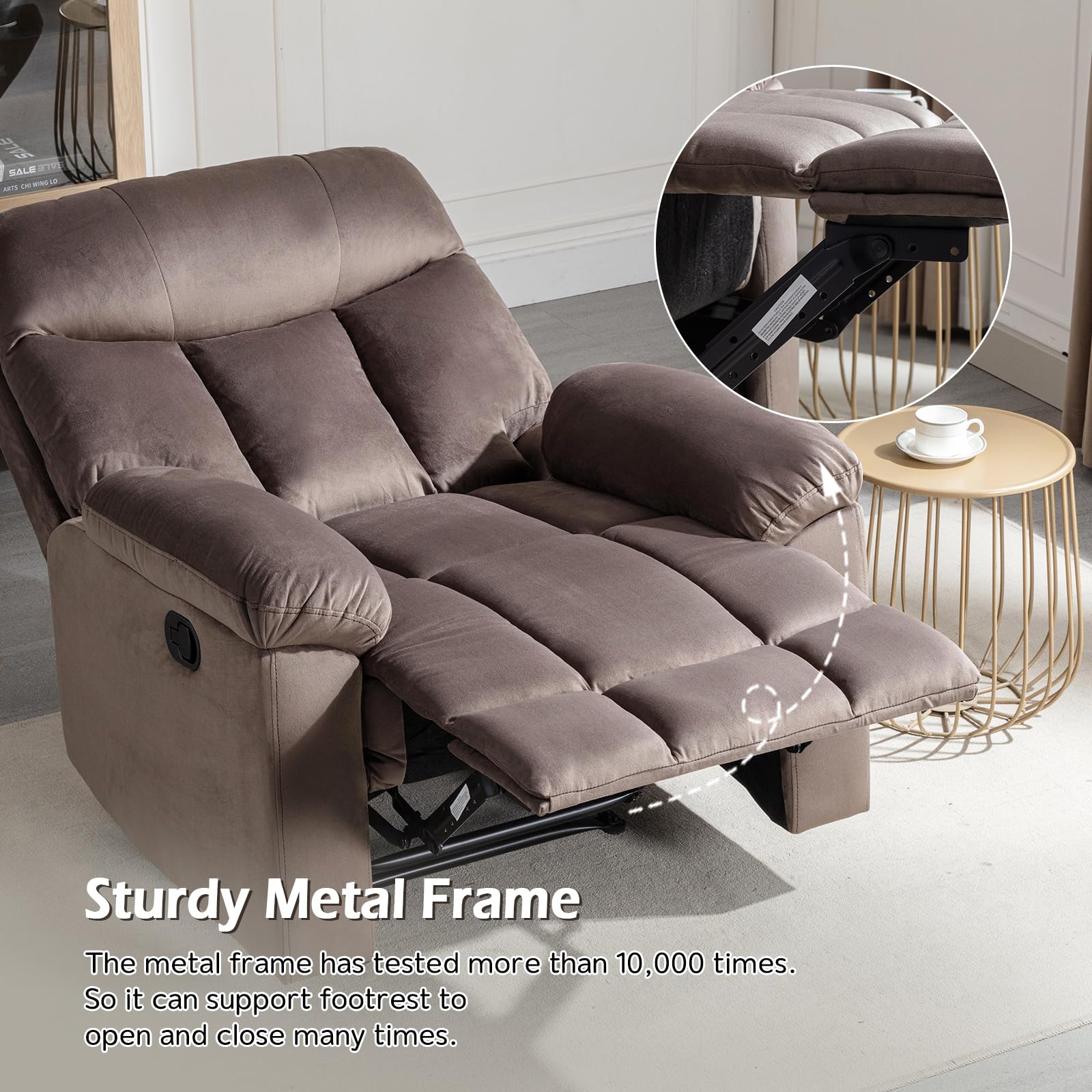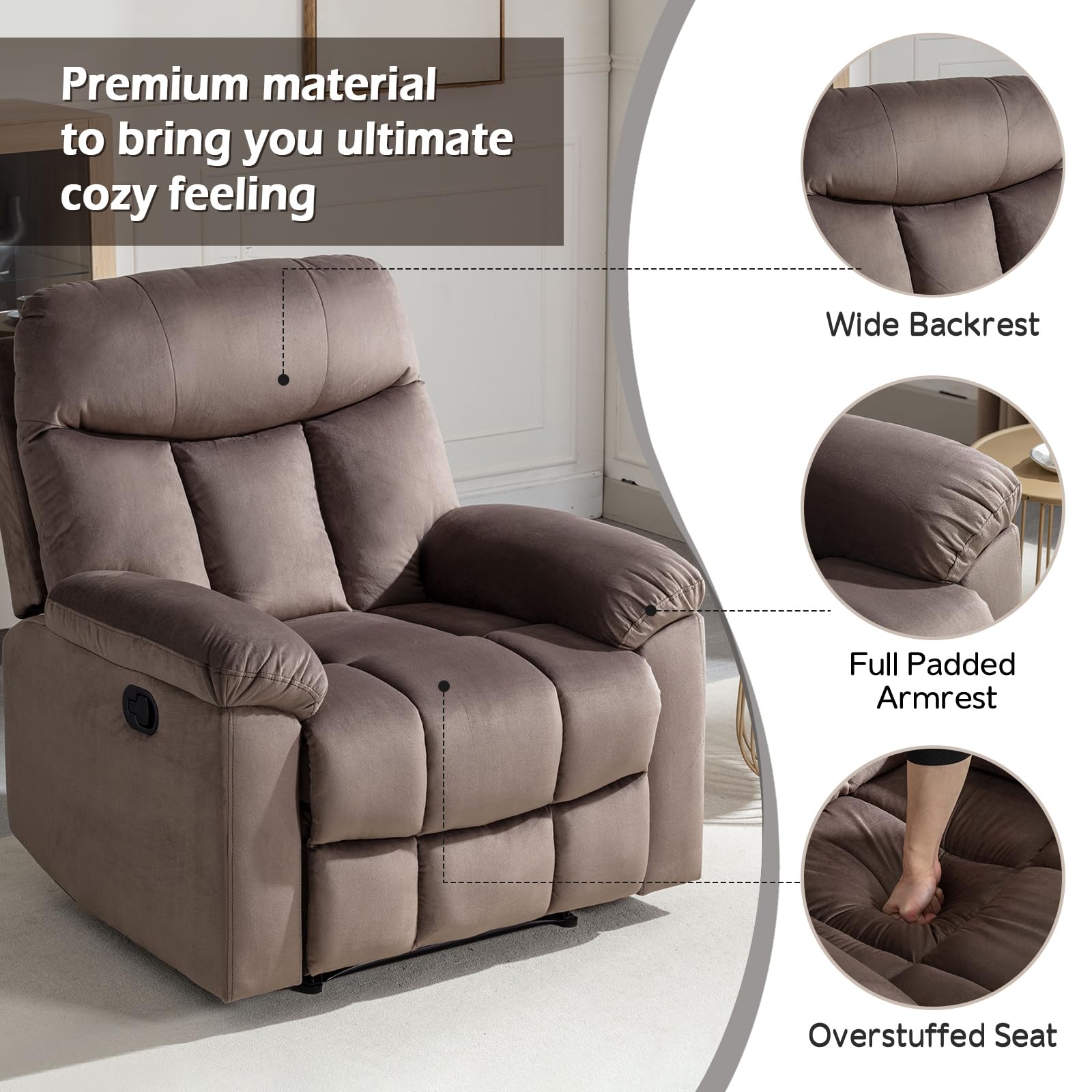 Manual Recliner Chairs, Soft Fabric Reclining Chair with Overstuffed Arm and Back,