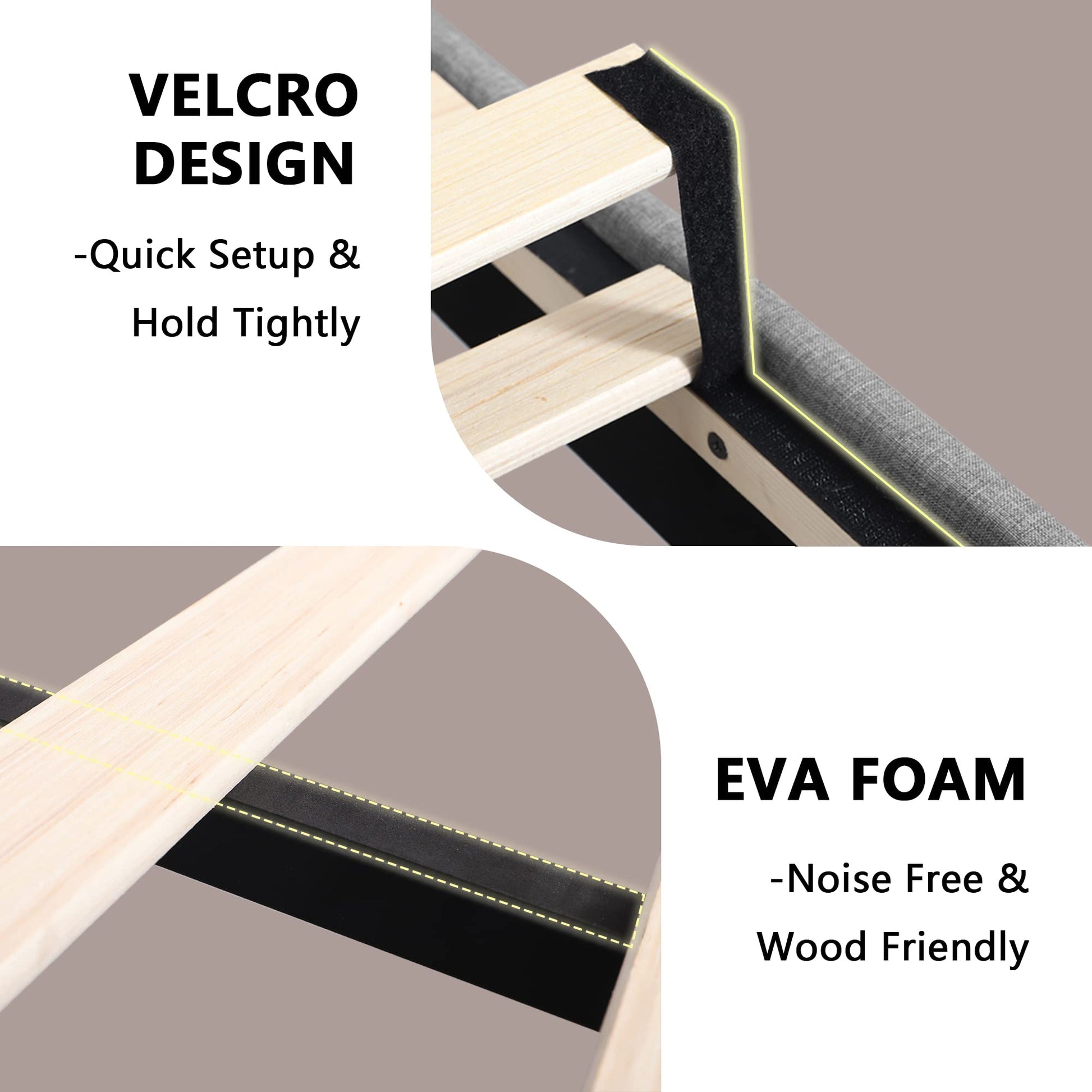 - Noiseless & No Box Spring Needed: The metal base is covered with EVA foam, making it quiet and the Velcro on the base secures each slat tightly held. The sturdy construction supports the mattress well without the need for a box spring