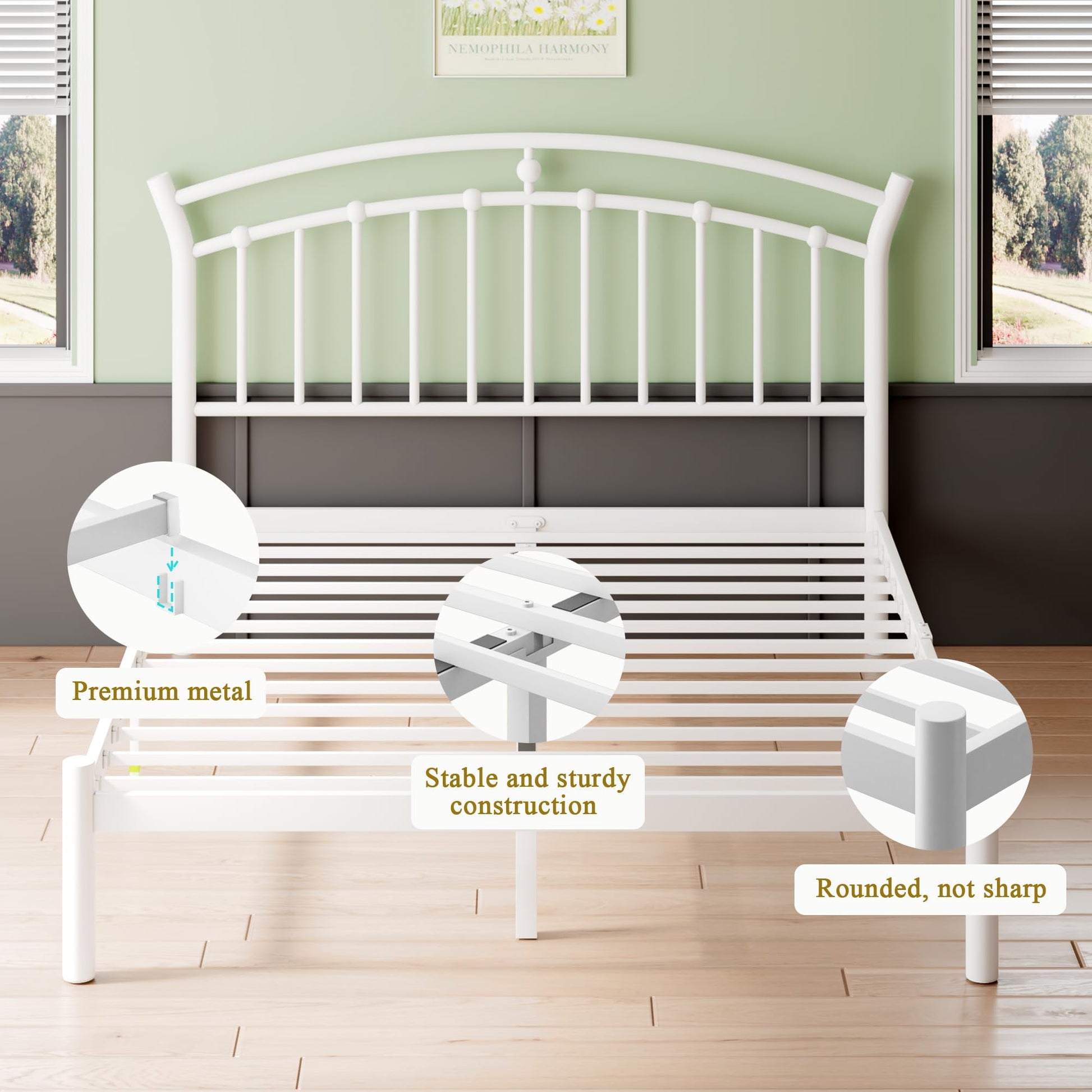 Queen Size Metal Platform Bed Frame with Modern Iron-Art Headboard/Heavy Duty