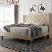 Queen Size Upholstered Platform Bed Frame, Wingback Bed Frame