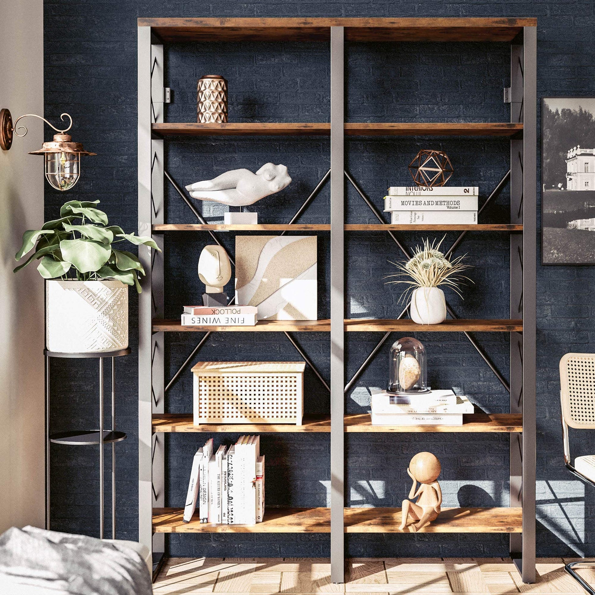 - Durable & Solid --- This large bookshelf is made of a thicker metal frame and P2 grade MDF board, which adds industrial-inspired style to your decor. The Crossbar design at the back makes the bookshelf more stable and durable.