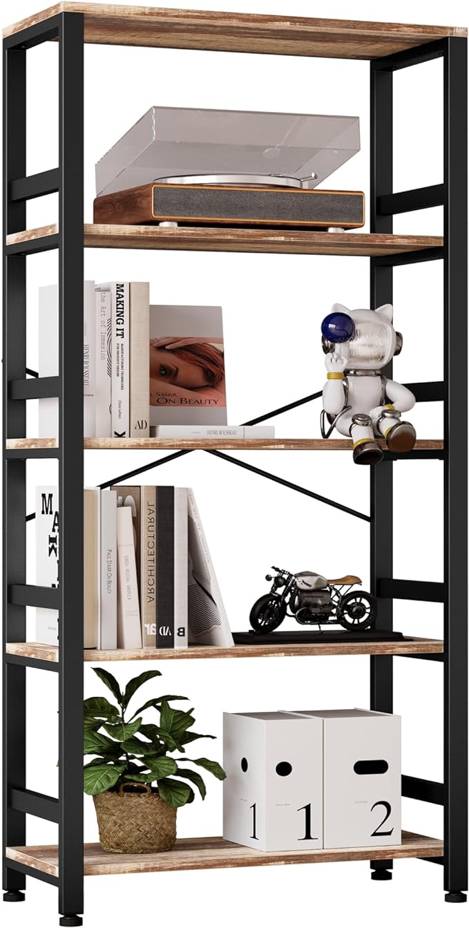 Bookshelves and Bookcases, 31.5in Wide Shelf 5-Tier Ladder Shelf 110lbs/shelf Vintage Industrial Style