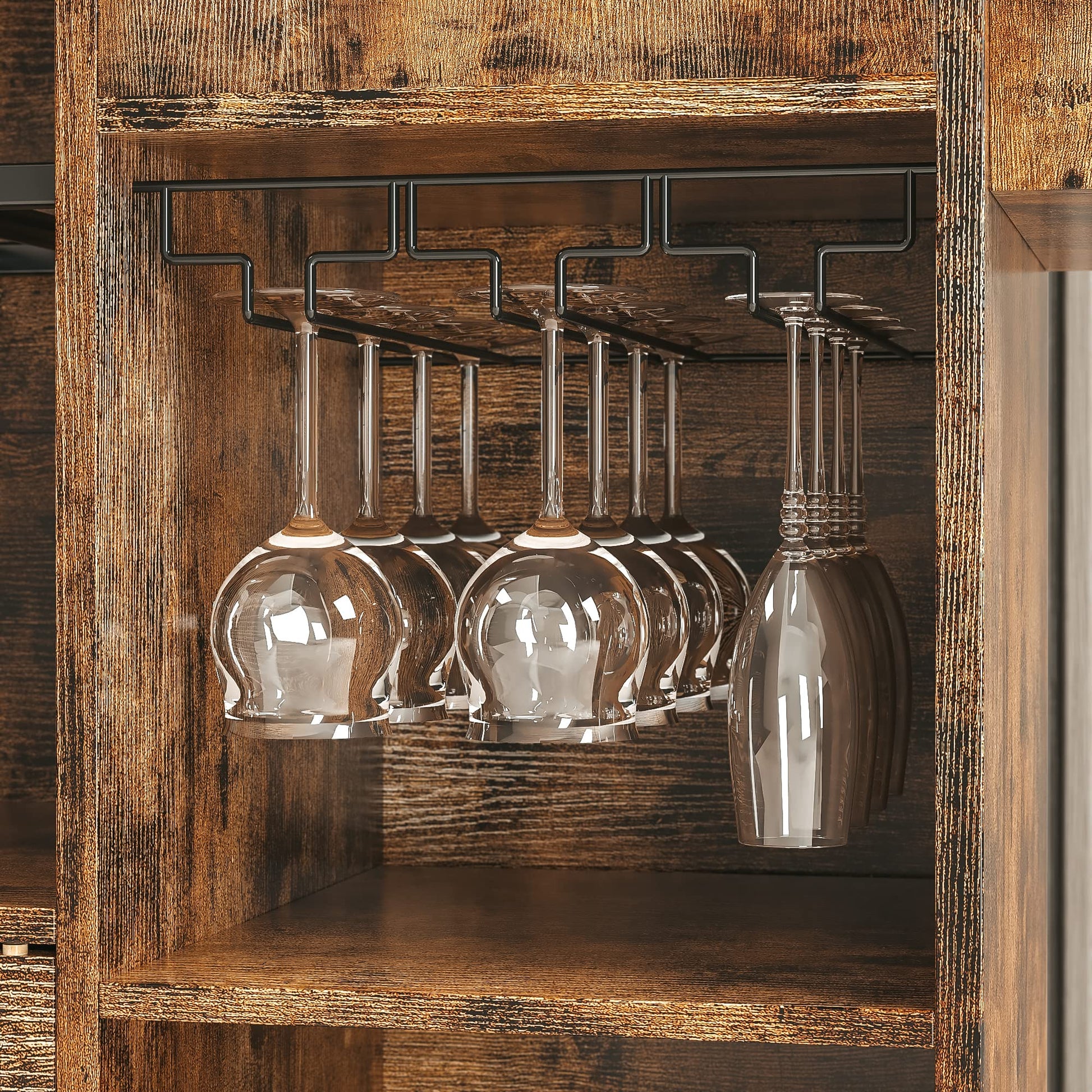 - Classified Storage Neat and Orderly- With a door cabinet , a large cubby, a drawer, adjustable open 3 shelves wine rack and cup hanging. Attached spice rack, towel bars and some hooks on each side, all to help you organize and store kitchen supplies by category.