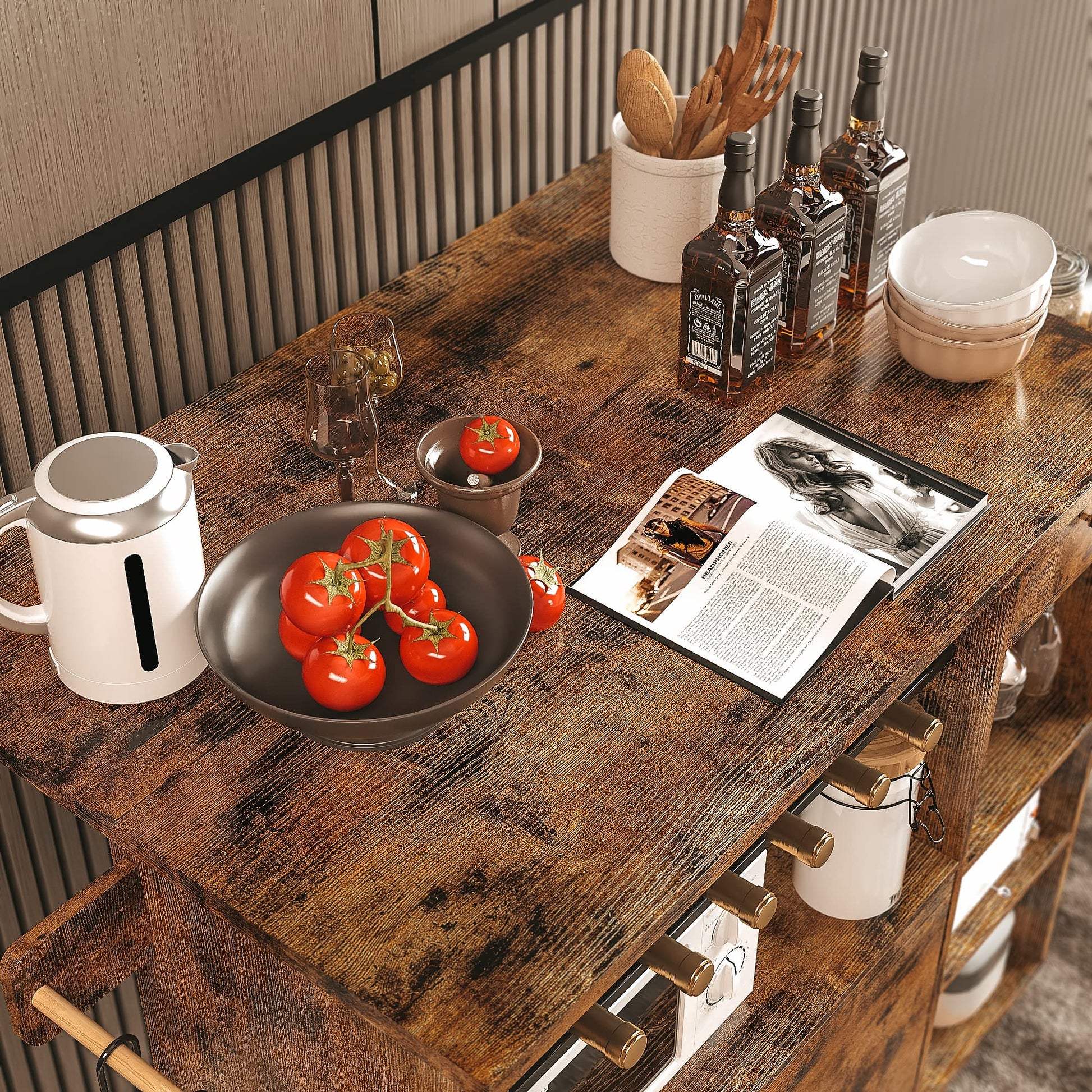 Rolling Kitchen Island Cart with Drop-Leaf and Wine Rack