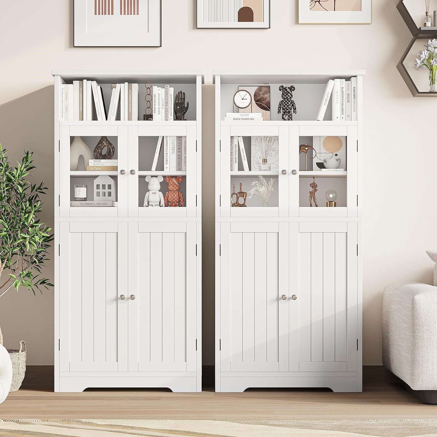 - Modern Style: This elegant storage cabinet organizer with clear tempered glass door and lined doors becomes a show-stopping addition to any room, adding charm along with ample storage and display space
