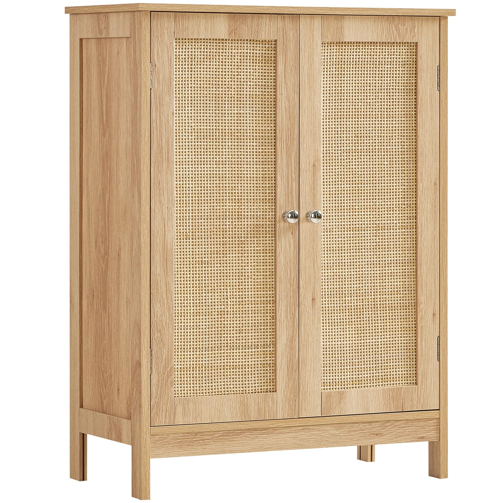 Storage Cabinet with Rattan Doors, Bathroom Storage Cabinet with Adjustable Shelf