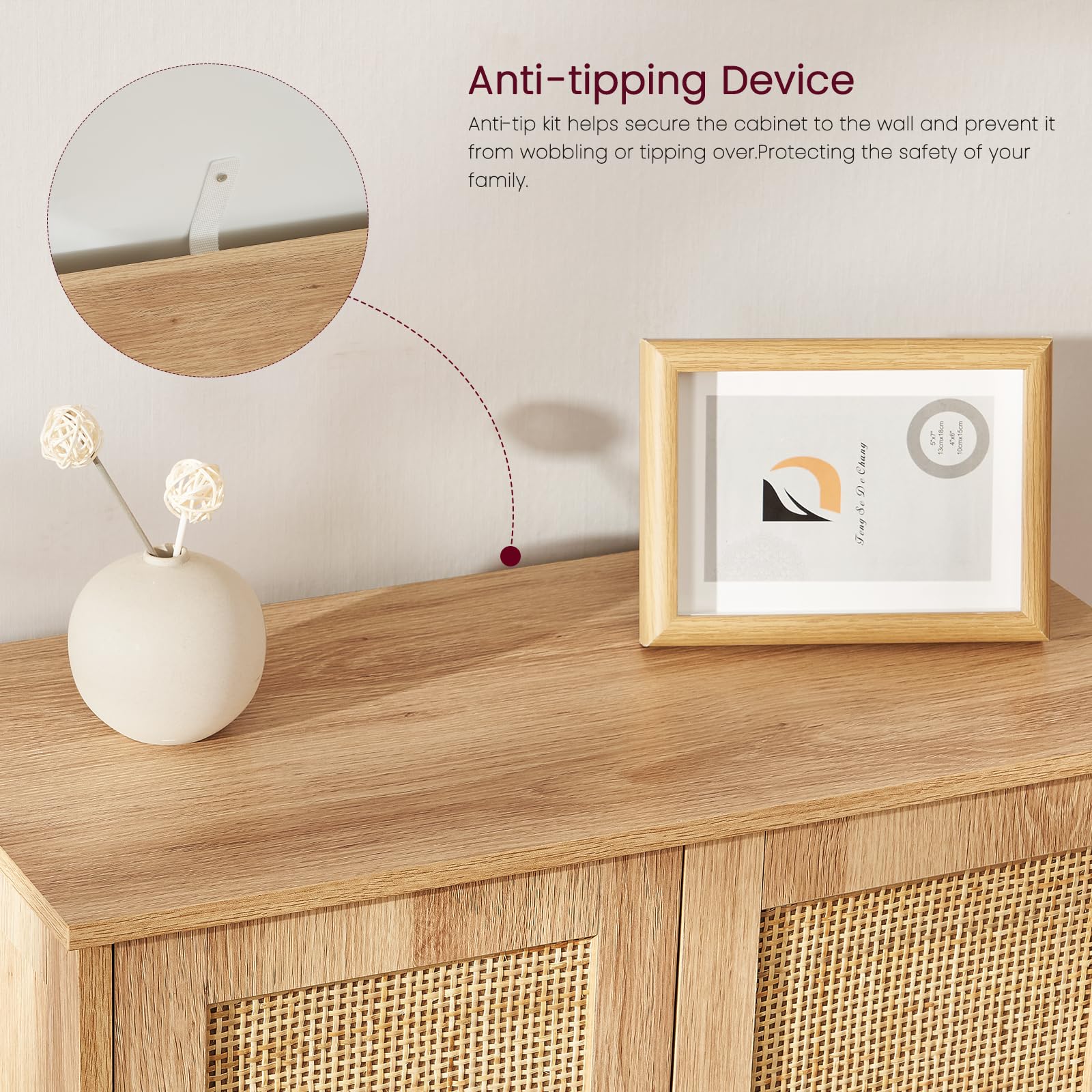 - combining aesthetic beauty with great practicality. The rattan cabinet not only meet your various storage needs, also is a nice addition as a home decor. You can used it display cabinet in the living room, sideboard buffet cabinet for in the kitchen, shoe cabinet in the entryway, or a bathroom cabinet for laundry room...All up to you!