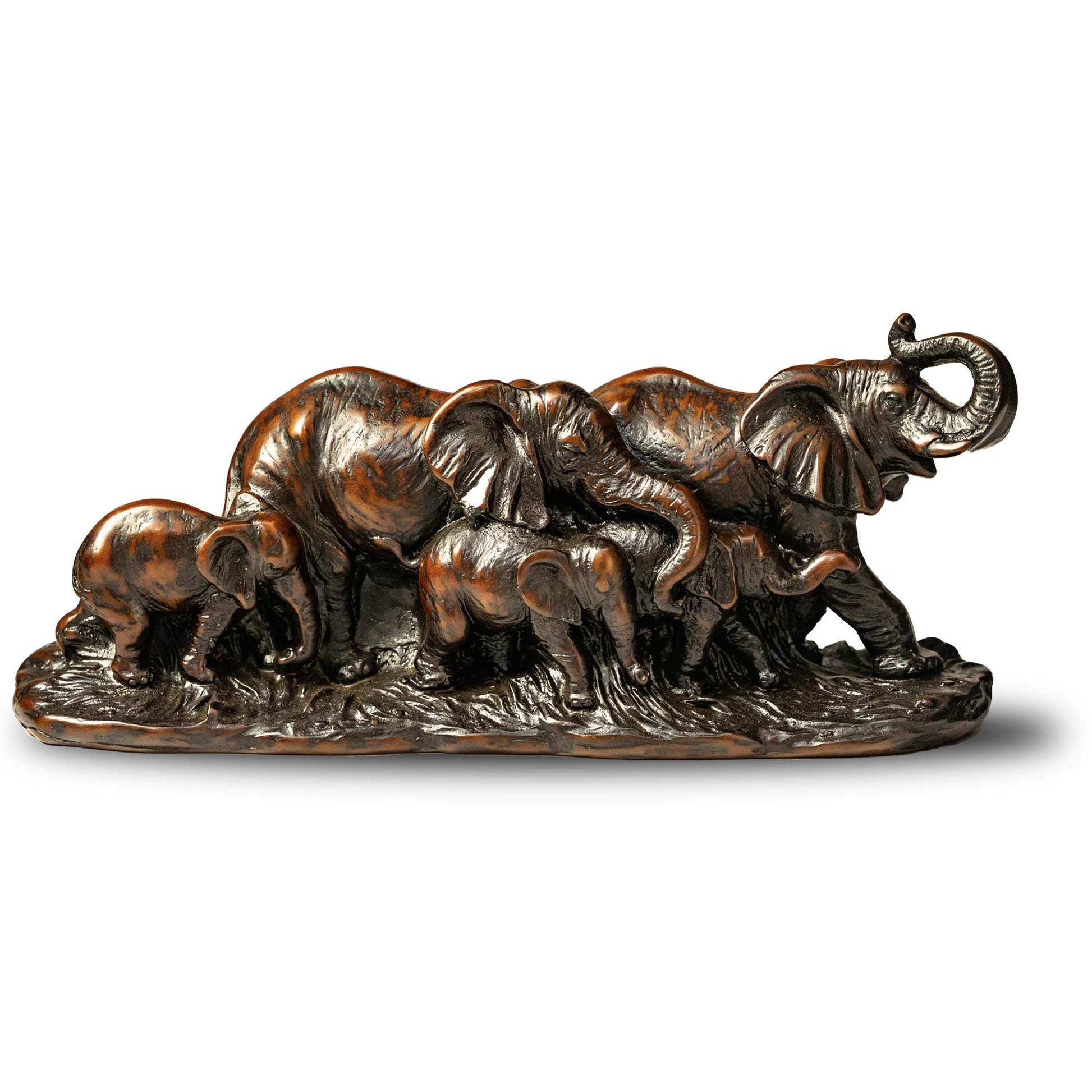 Resin Elephant Family Statue - Decorative Herd with Babies with Beautful Polished Bronze