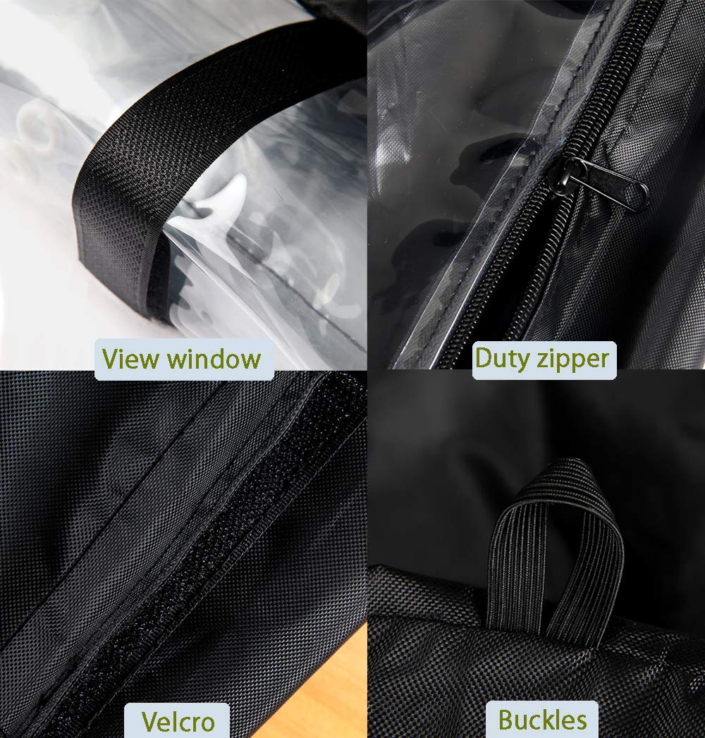 - roll-up velcro to fix the cover well. The little zip compartments make rabbit cage cover easy to open the hutch doors without removing the cover.