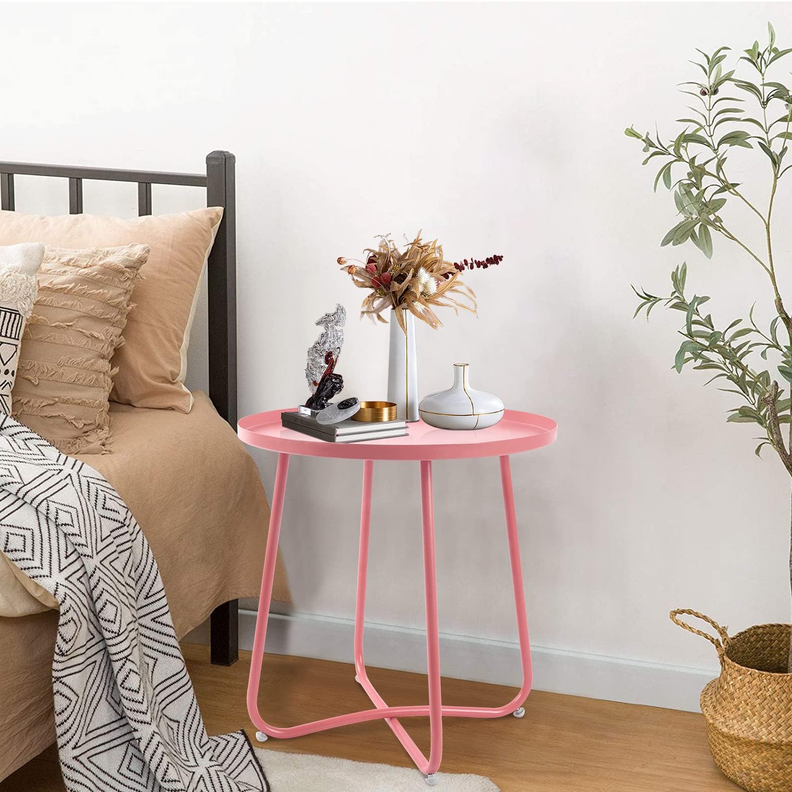 - The powder-coated steel frame design makes the small outdoor side table weather-resistant and rust-resistant,the surface is smooth enough not to rust in the rain. Will not peel, rust or rot like normal wooden outdoor tables. Stain Resistant and Maintenance free,no need to worry about fading,perfect for everyday outdoor use in your patio.