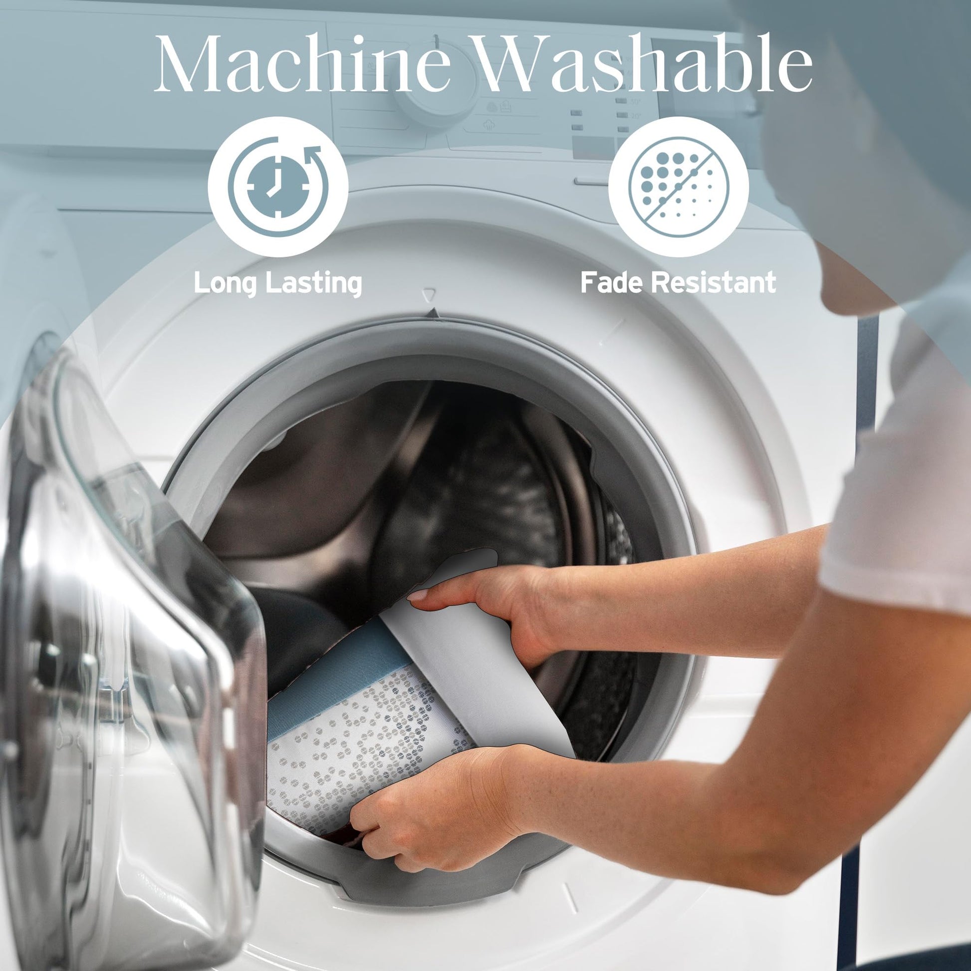 Machine washable for easy maintenance. Tumble dry on low heat. Do not bleach.