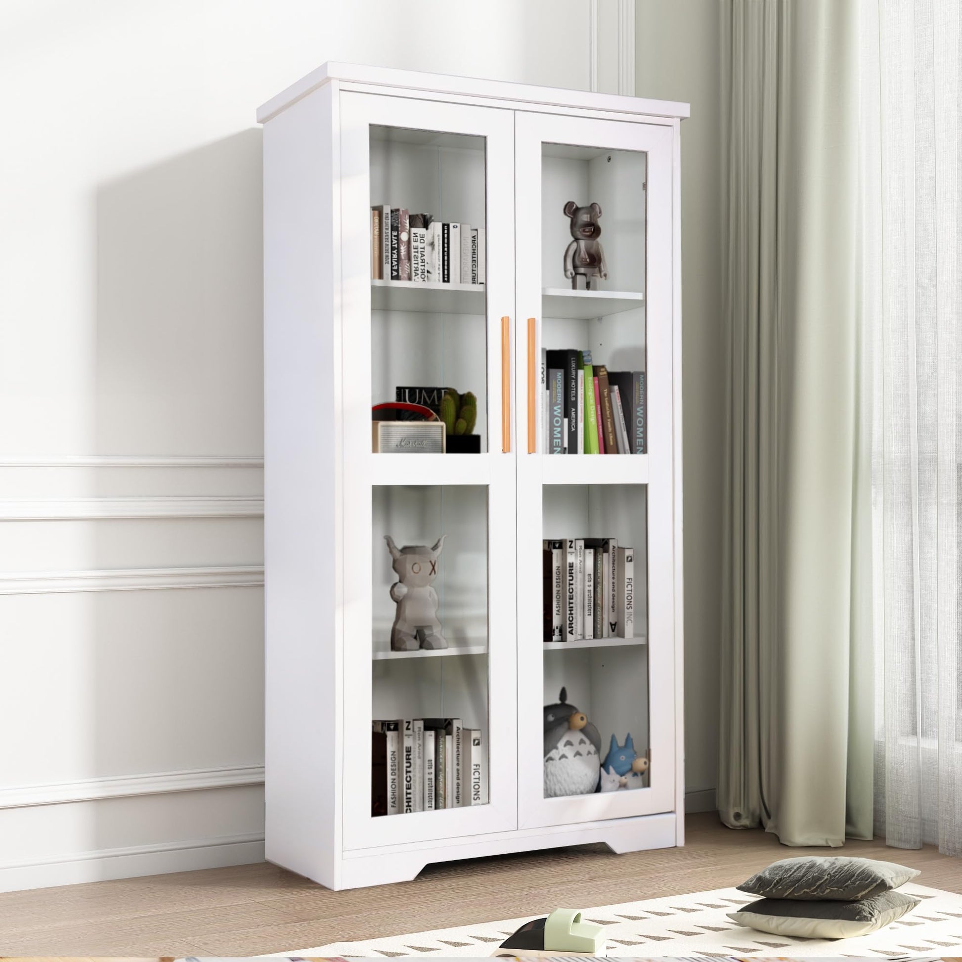 - Our high display storage cabinet features glass door, gold handles and 2 adjustable shelves, provides big practicality for home and office and enhances your home's decorative viewing experience