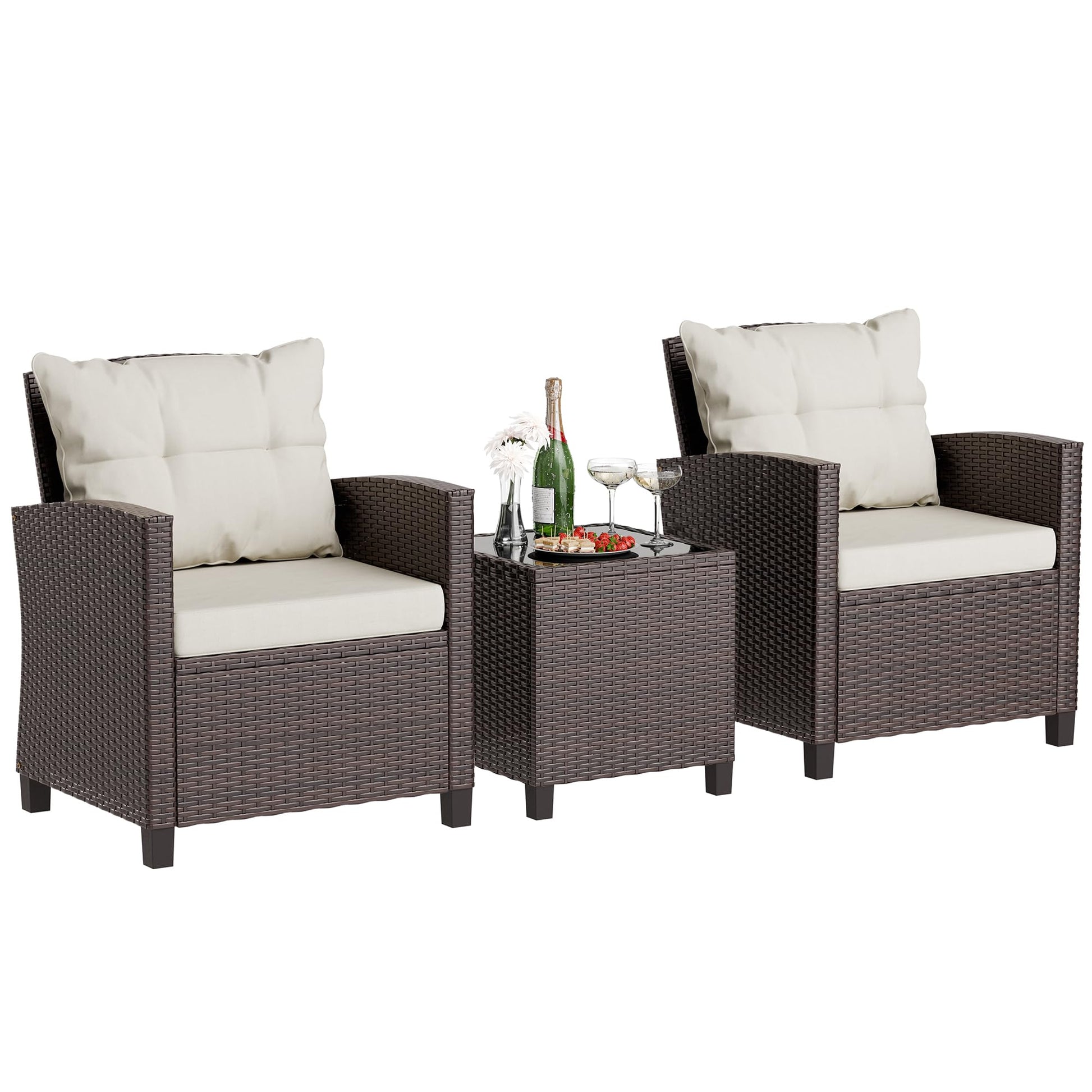 - Sturdy bistro set: The 3-piece patio furniture set is constructed with durable rattan wickers. High-quality rattan protects products from fading and cracking. Its sturdy construction and weather-resistant material ensure