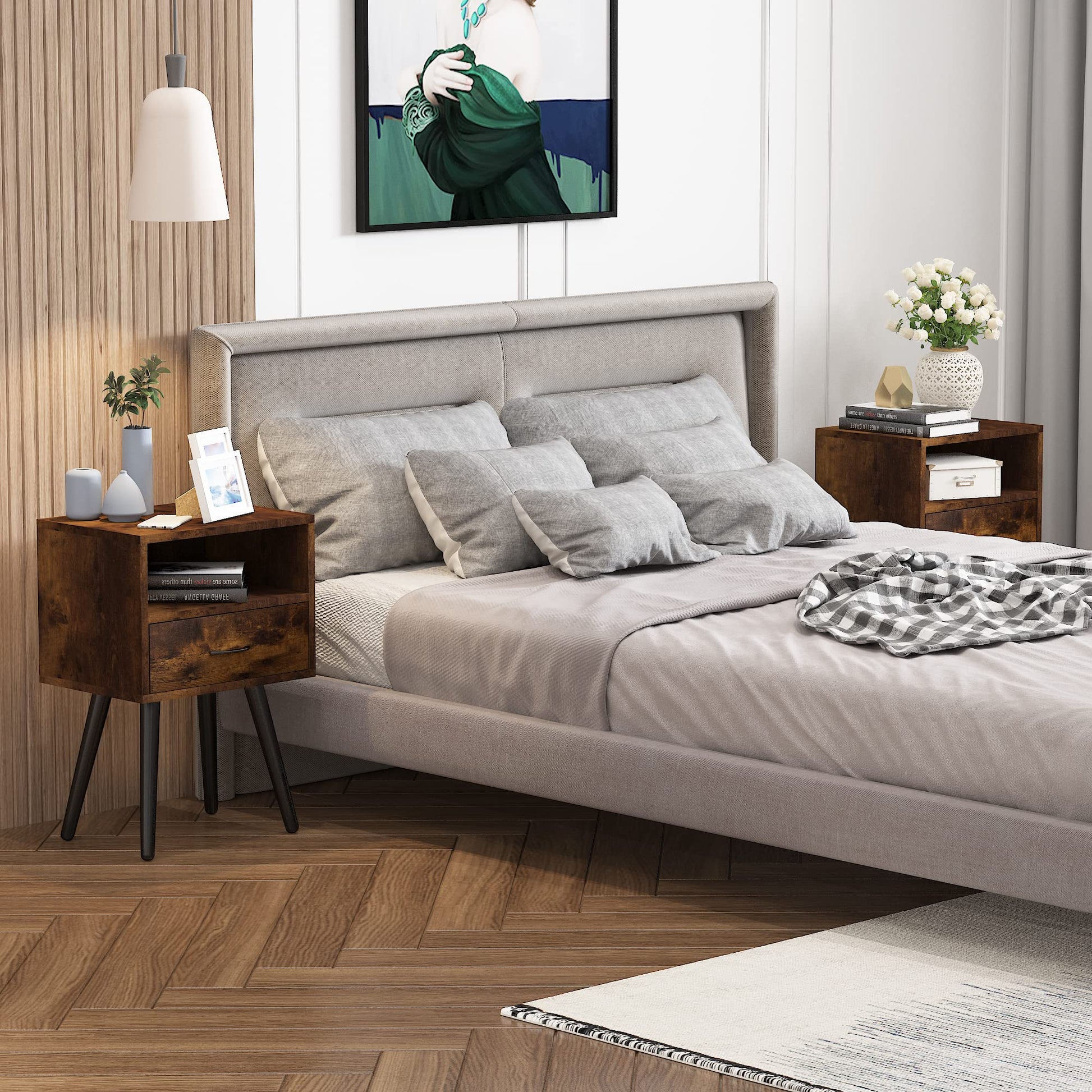 - This set of 2 nightstands designed with both closed and open storage is a functional decor for bedrooms or entryways to serve as a nightstand or an end table, helping embrace retro style.