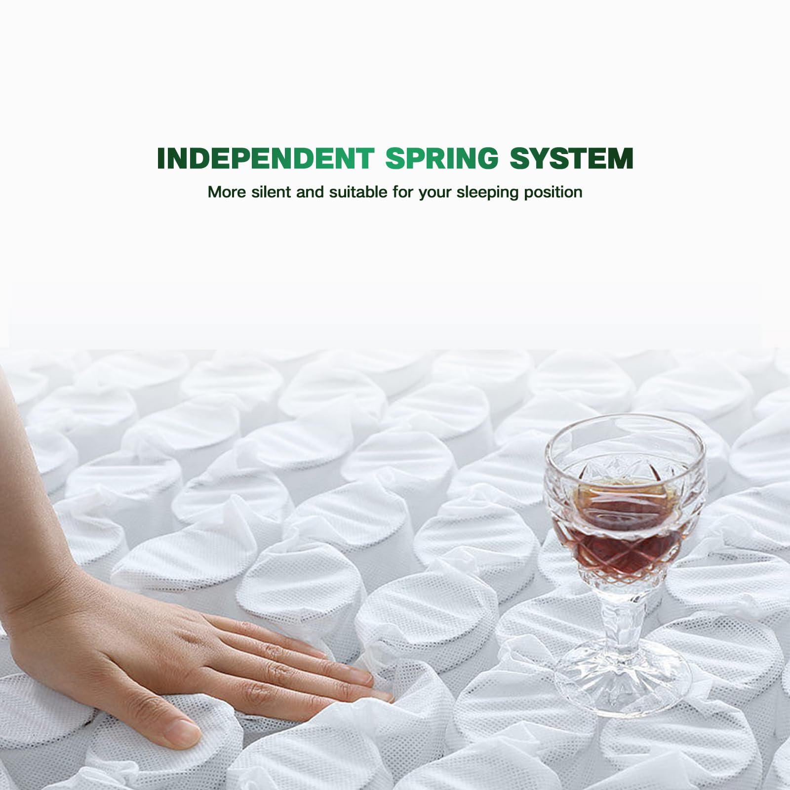 - Stay Cool & Motion Isolation queen-size mattress is designed with ventilated foam and breathable knitted fabric to disperse accumulated heat, preventing night sweats. The unique pocket spring system is supported by hundreds of reinforced pocket coils, each working independently to be noiseless and reduce the vibration of bed motion. Therefore, your deep sleep will never be disturbed by your partner's turning over or getting up.
