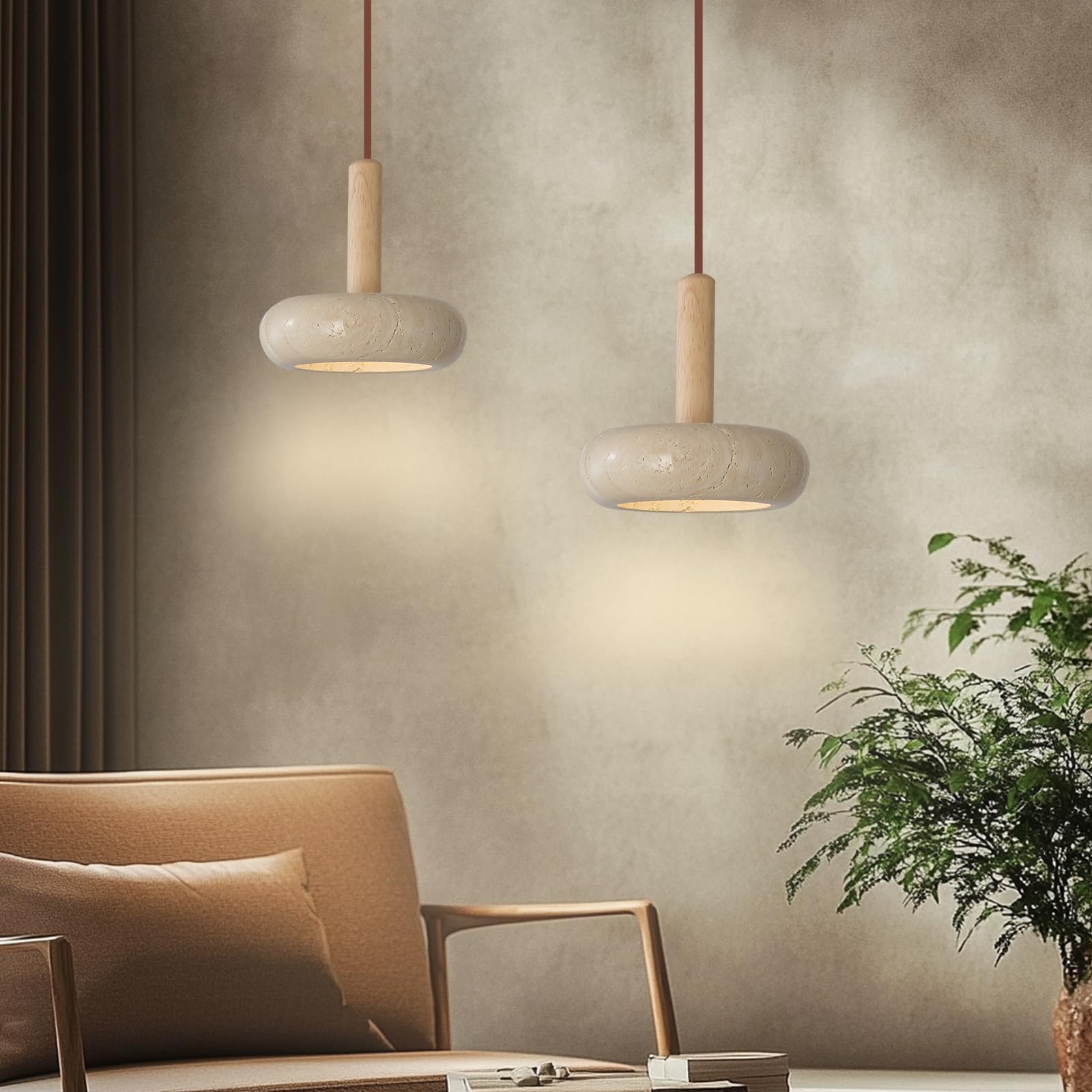 Wabi-sabi Style Pendant Light Round Natural Stone Shade Nordic Wood Chandelier Bedroom