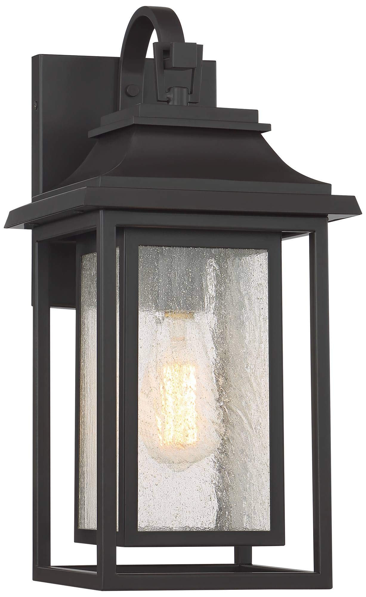 - This bronze outdoor light fixture is crafted to withstand the elements, making it a weatherproof solution for your exterior lighting needs. Whether installed as an outside door light, back porch light, or part of your outdoor garage lighting, it ensures reliability and style in every season. Its mission aesthetic fits beautifully into rustic or modern designs, bringing warmth to any space.