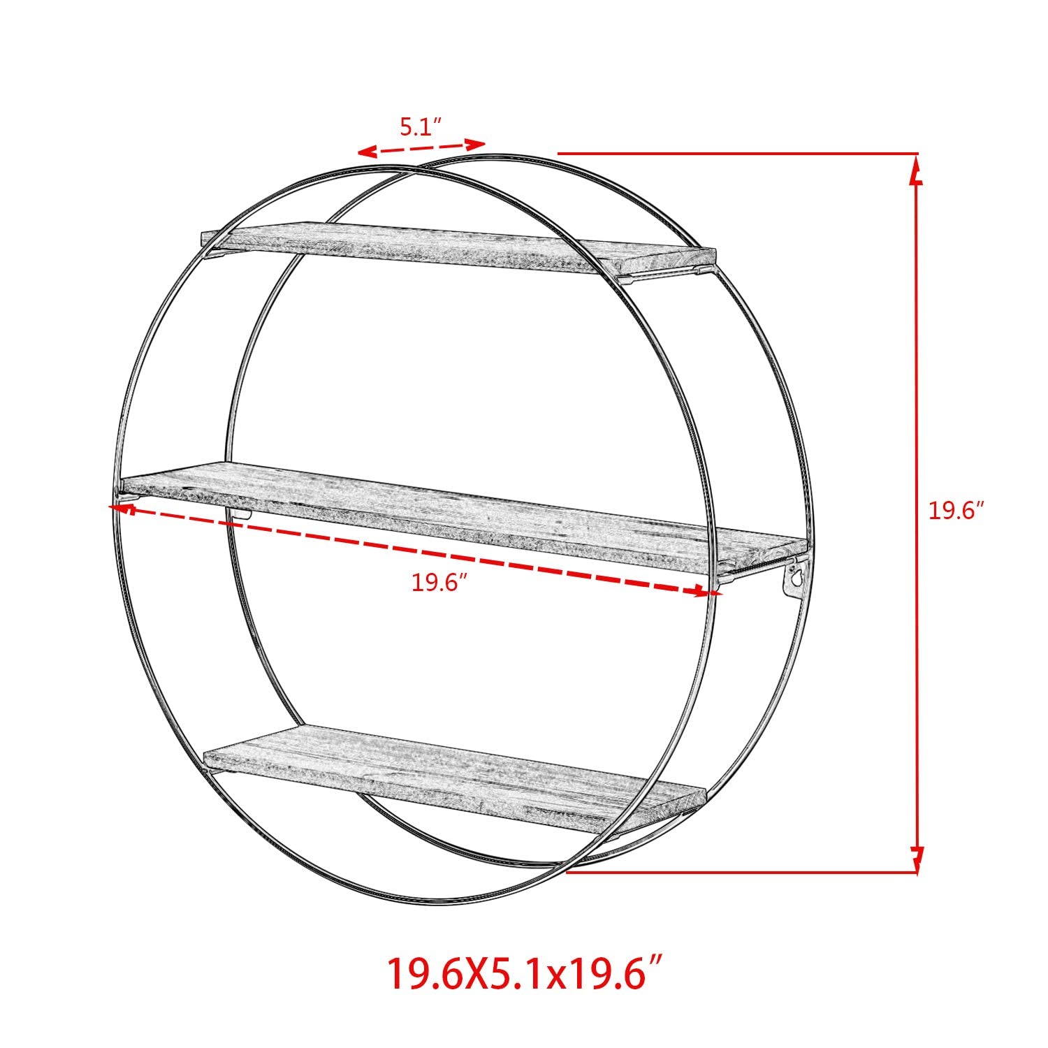 - WALL SHELF DIMENSIONS: 19.6'' H x 19.6'' W x 5.1'' D. Perfect size for your wall. The rustic shelves can help make full use of your empty walls, which is much more space-saving and makes your room look larger and tidier.
