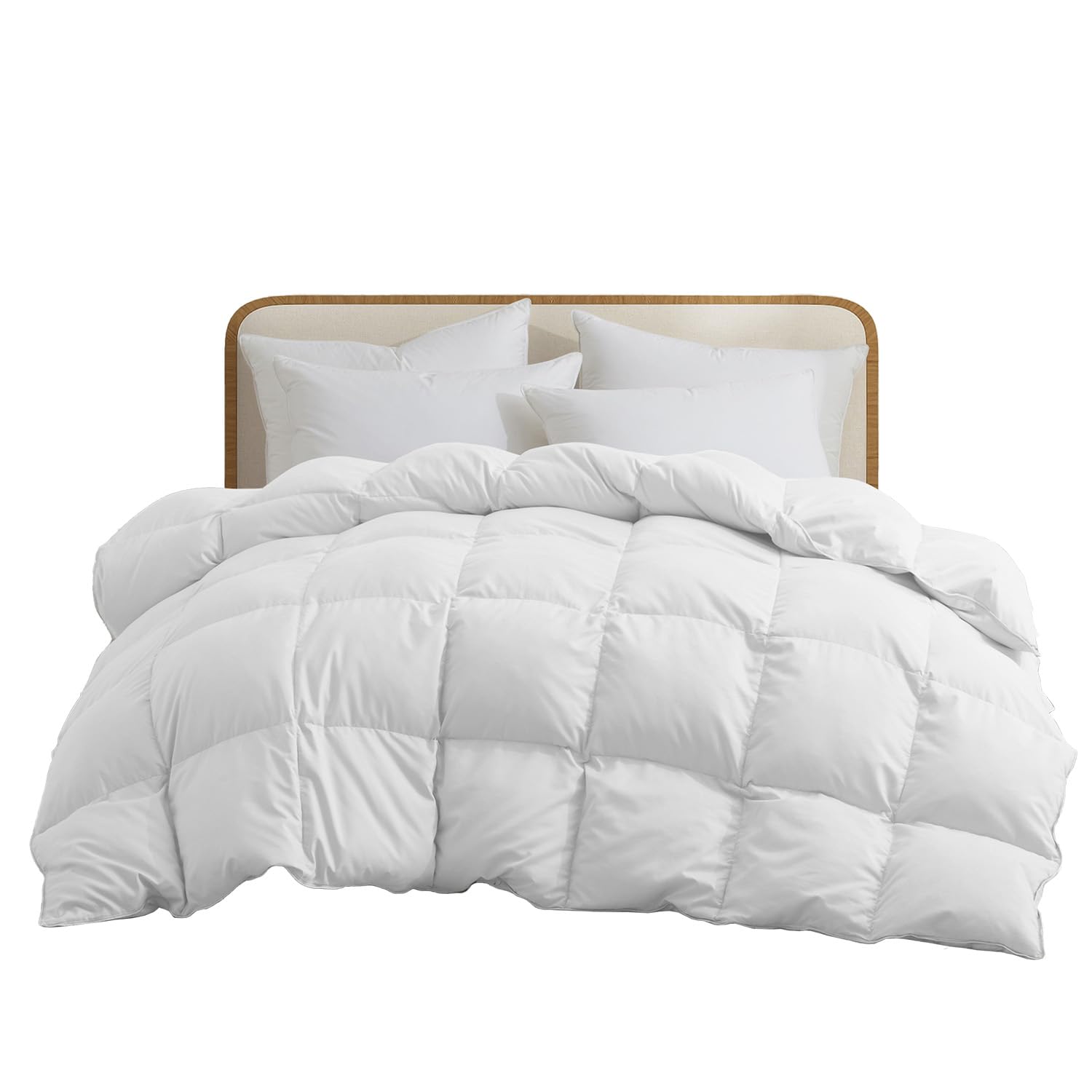 - Filled with 95% goose feather fiber and 5% white goose down, this comforter offers the ideal balance of warmth and breathability. The natural fill keeps you warm in winter and allows for optimal airflow in summer, making it the perfect choice for comfortable sleep all year round