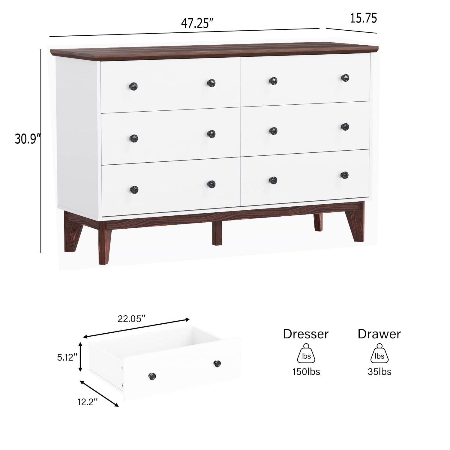 - Sturdy Construction: White dresser equipped with 6 pull-out drawers as well as the wide tabletop, you'll stay organized and tidy with this chest of drawers .Thickened wooden top board and solid wood frame make this white dresser more stable.